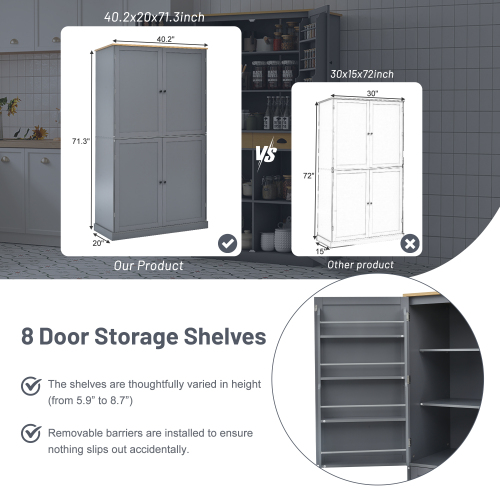 [Assembly video available] TOPMAX 40.2x20x71.3 Inches Tall Freestanding Kitchen Pantry Large Cabinet Storage Cabinet with 2 Drawers, 2 Adjustable Shelves, 8 Kitchen Door Racks, Dining Room, Gray