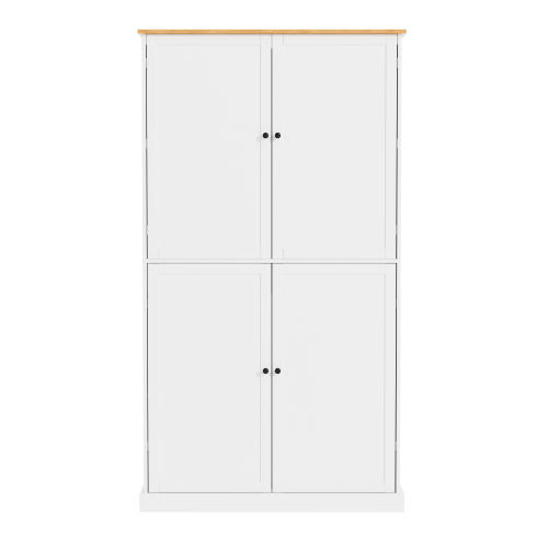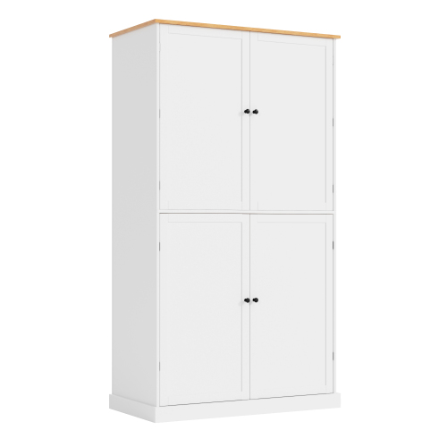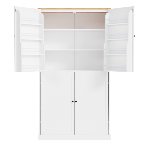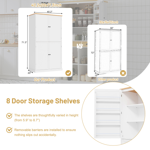 [8 Door Storage Racks] This elegantly designed 4-door kitchen pantry includes two upper doors, each door opening revealing 4 door shelves, cleverly maximizing storage space. The height of the shelves has been carefully designed (from 5.9 inches to 8.7 inches) to make it easy to store items from tall bottles to small jars. For added convenience and safety, a removable barrier is installed to ensure nothing goes wrong.