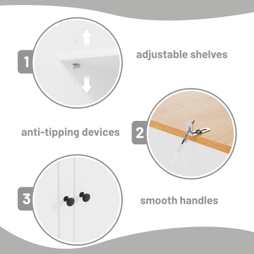 The [Adjustable Shelf] cabinet is cleverly designed with two adjustable shelves, each of which can be placed at 3 different heights to provide a flexible storage solution. Underneath, the cabinets are neatly divided into four sections, making it easy to sort and access various items. This design cleverly optimizes space while bringing a customized feel to your kitchen organization.