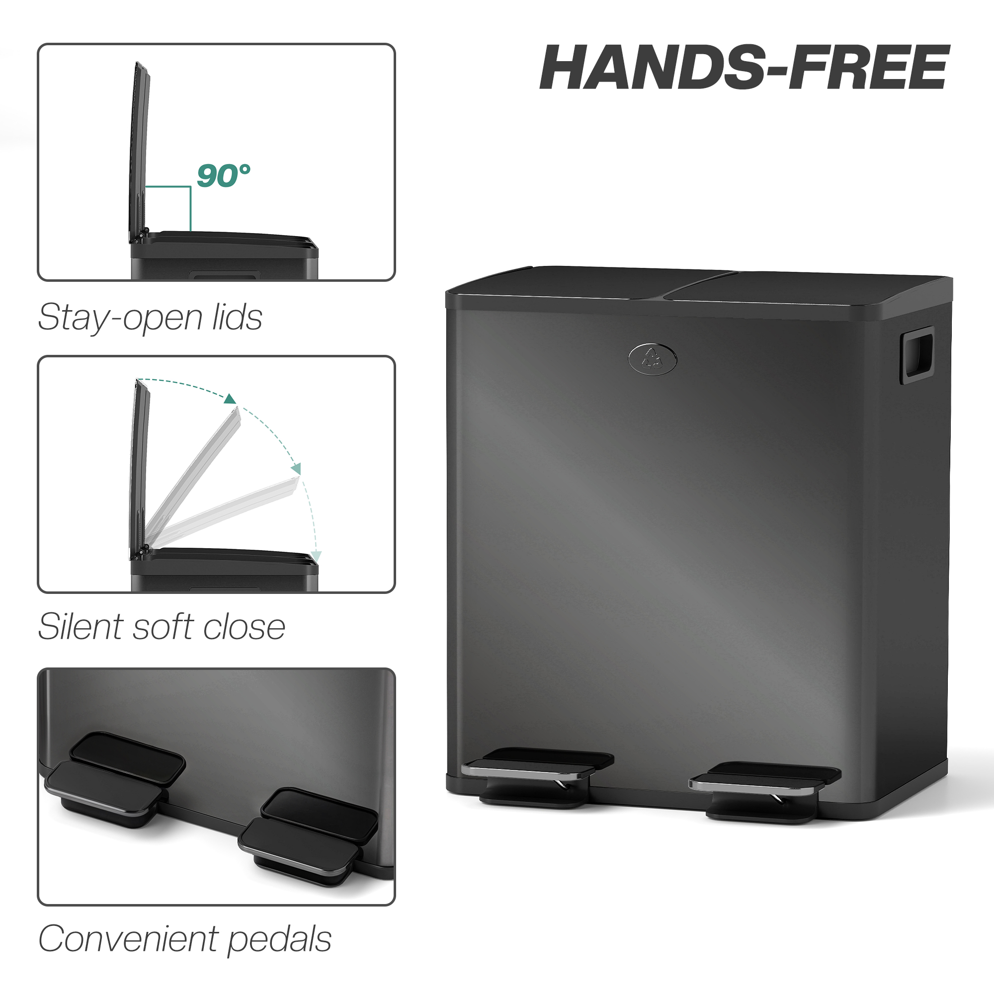 Double the compact hygiene, for the kitchen and beyond: this 20L double kitchen pedal bin. Made from stainless steel, this is a piece suited for everyday use; the two-compartment design allows you to separate waste as needed. Place deodorisers in the lid slots to keep the smell fresh, with a stay-open option for super easy cleaning. So, when you feel stuck on space, go for this small but mighty dual rubbish bin.