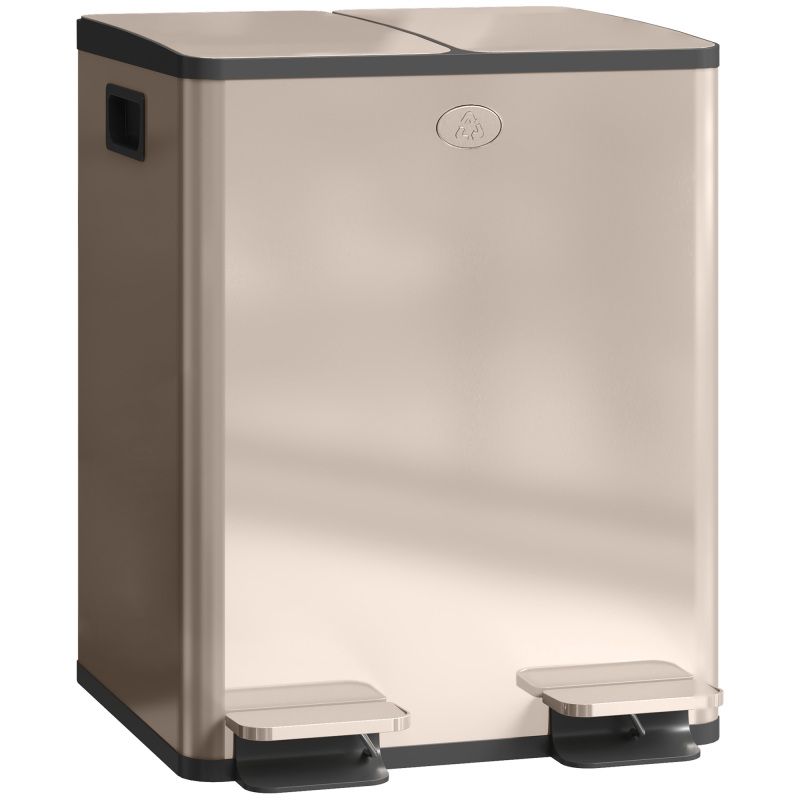 Double the compact hygiene, for the kitchen and beyond: this 20L double kitchen pedal bin. Made from stainless steel, this is a piece suited for everyday use; the two-compartment design allows you to separate waste as needed. Place deodorisers in the lid slots to keep the smell fresh, with a stay-open option for super easy cleaning. So, when you feel stuck on space, go for this small but mighty dual rubbish bin.