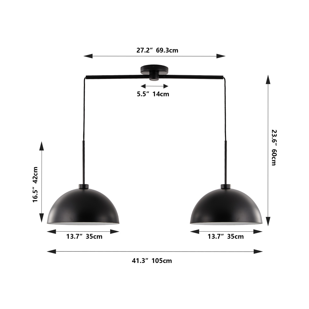 Fashionable and modern design: This pendant light features a classic black metal frame and a simple double headed design, perfectly blending modern and industrial styles, adding a unique aesthetic to any indoor space.Adjustable suspension height: The height of each lamp head can be adjusted, making it easy to flexibly set according to different ceiling heights and decoration needs, providing a personalized lighting experience.Multi scenario applicability: Whether it's a dining room, kitchen, living room, or foyer, this pendant light can bring warm light and a fashionable atmosphere to your space, perfectly matching various home styles.High quality materials: Made of durable metal material with finely polished matte black surface, ensuring long-term use without fading or damage, while enhancing the durability and texture of the lighting fixtures.Easy to install: With a simple installation design, even non professionals can quickly complete the installation, saving time and labor.