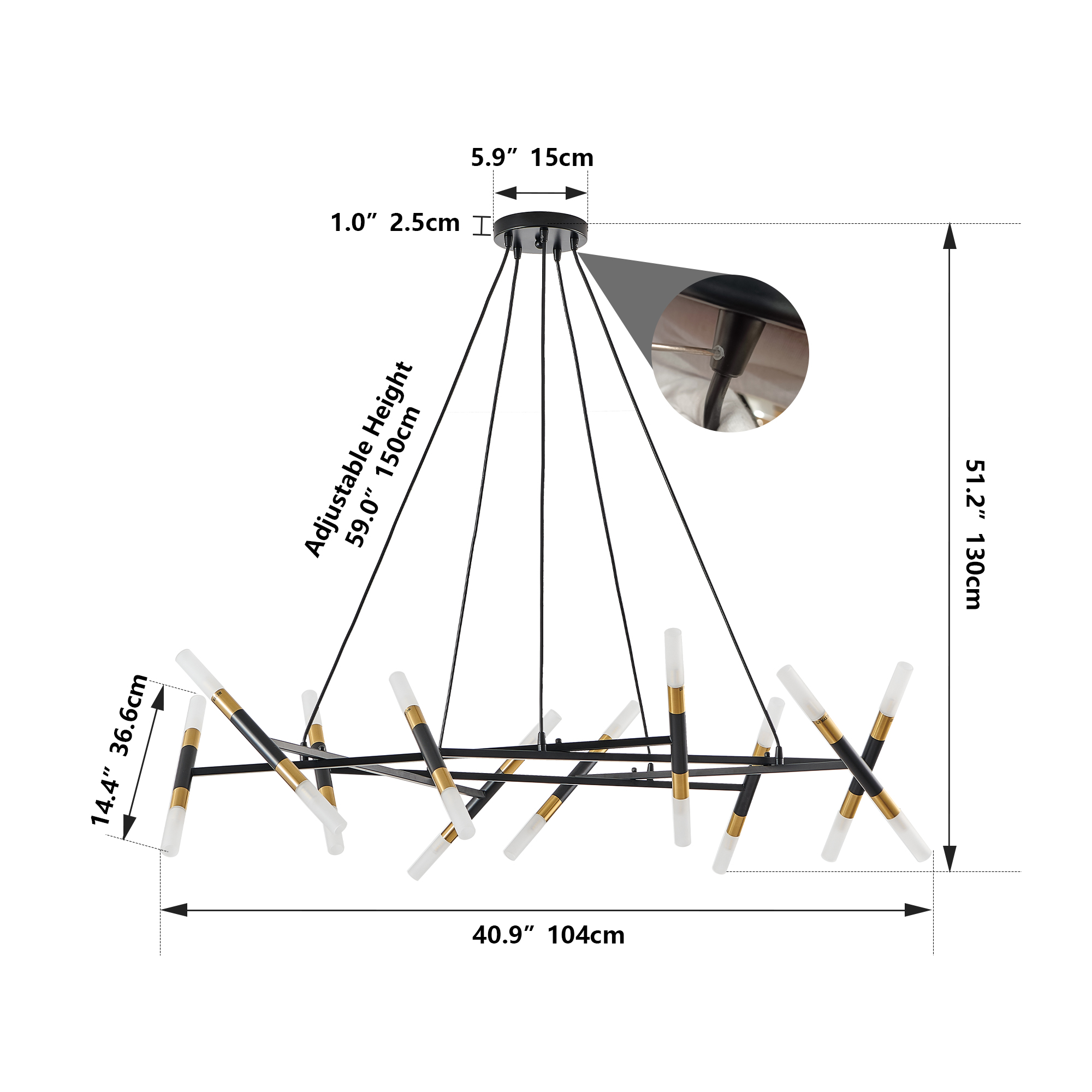Modern minimalist design:The combination of branched design and matte gold showcases a high-end and atmospheric modern artistic sense, suitable for decorating various indoor spaces such as dining rooms, living rooms, or kitchen islands.High quality materials:Made of high-quality metal material and frosted lampshade, durable and with outstanding texture, rust and corrosion resistant, ensuring long-term use.Suitable for multiple spaces:The height adjustable black suspension line design flexibly meets different ceiling height requirements, making it perfect for both home and commercial spaces.Easy to install:Equipped with detailed installation instructions, supporting most ceiling installations and simplifying the operation process.