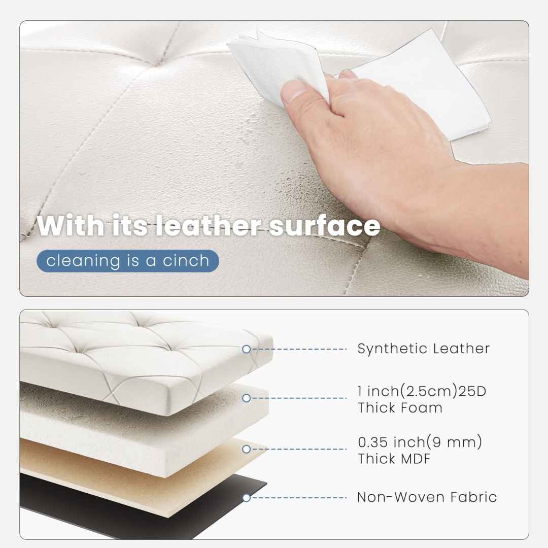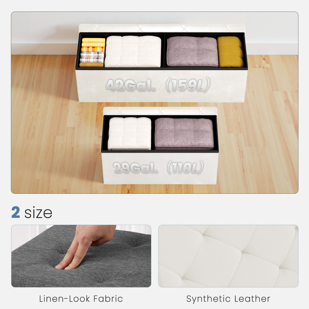 43-inch Foldable Storage Bench, Made Of PVC, With A Load Capacity Of 660 Pounds