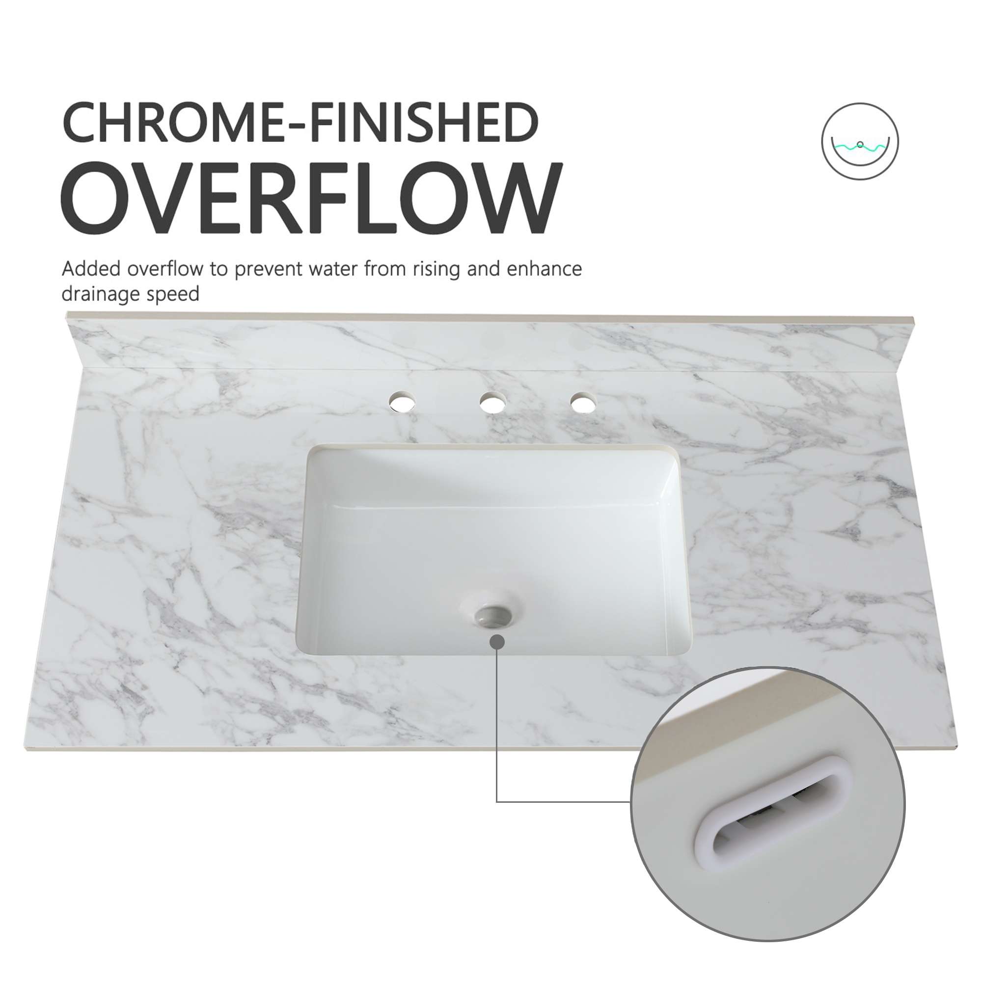 • Easy To Installation: Undermount bathroom vanity sink top pre-drilled for 8-inch widespread faucet. Assembled stylish rectangular white ceramic middle sink with safety overflow hole. Vanity top with sink is easy to handle and perfect obtain the beauty and durability of engineered stone whether you're installing it yourself or hiring a professional.