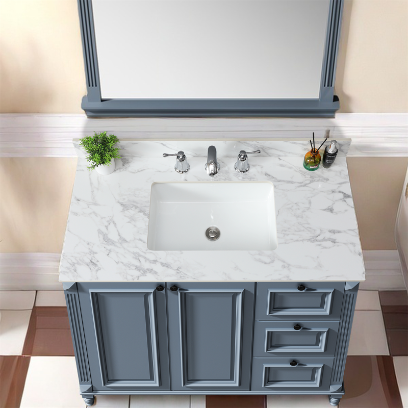 • Durable Material: Crafted from high-quality engineered stone, our sink top boasts exceptional durability and stain resistance, standing up to long-term use. Whether it's water droplets, cosmetics, or cleaning agents, it can be easily cleaned to keep the countertop looking fresh.