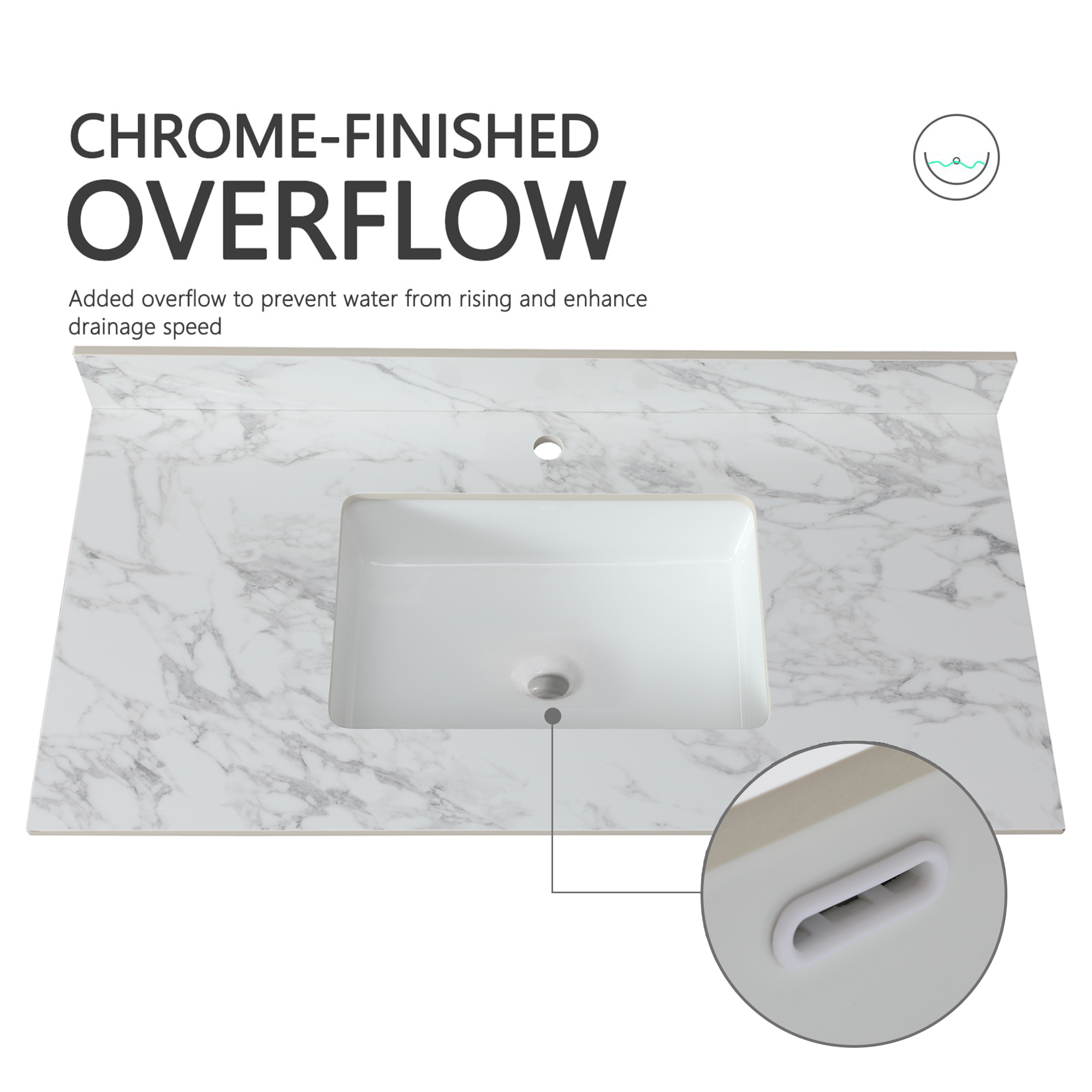 Product Name:43"x22"Bathroom Vanity Top,sintered stone carra white Barthroom Vanity Sink Tops with Rectangular Undermount Ceramic Sink with Vanity Backsplash, singe Faucet Hole Bathroom Vanity Countertop