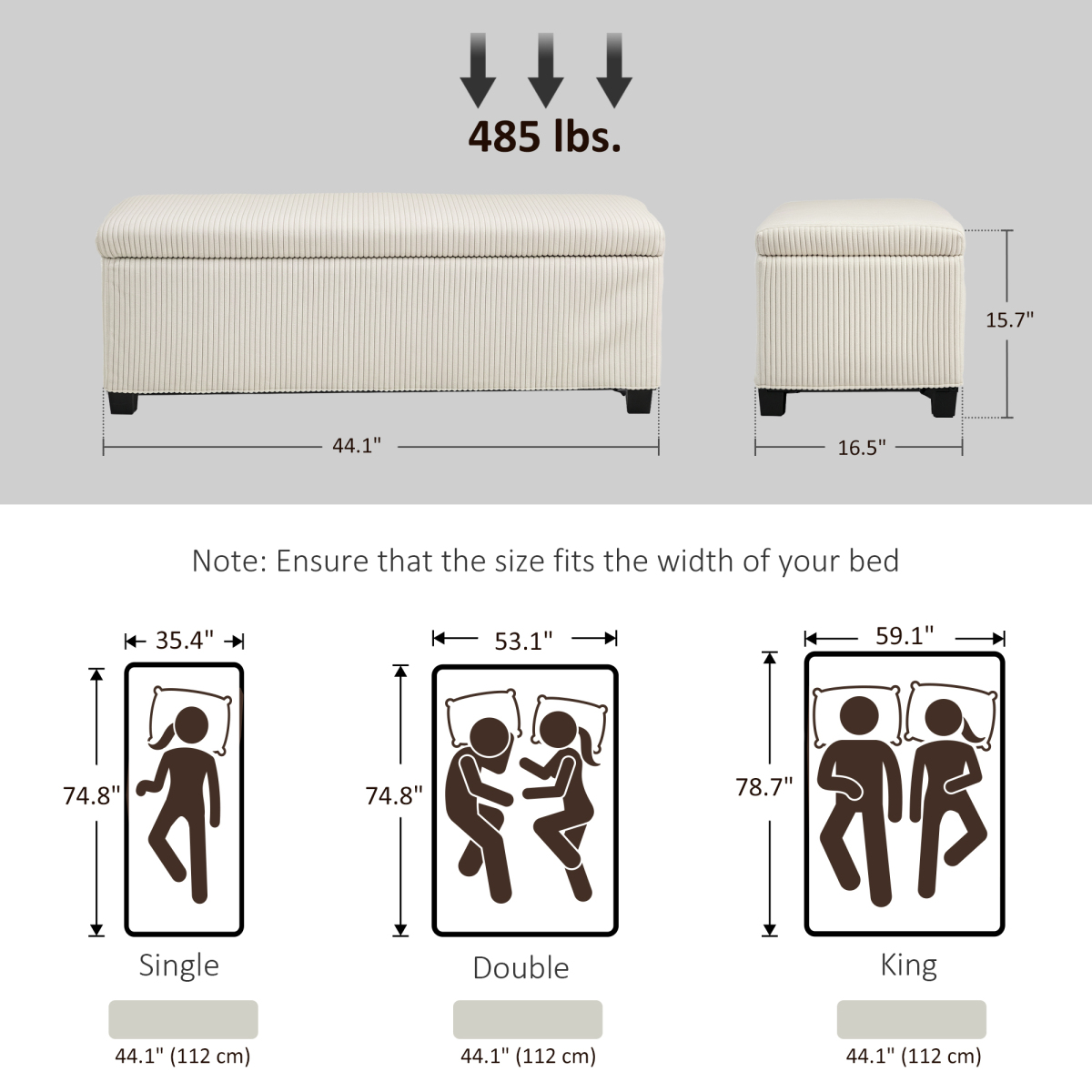 44 Inches Ottoman With Storage, Lid, Legs, Corduroy End Of Bed Bench For Living Room, Bedroom, Entryway, Beige