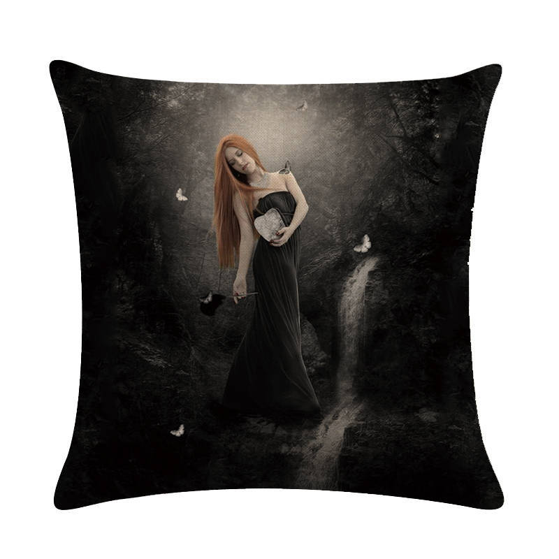 2. The front is digitally printed and the back is plain cotton and linen.
