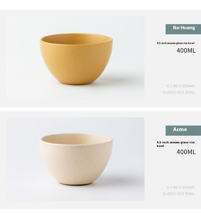 Color: 4.5-inch sesame glaze rice bowl-Ike mixed color 2 pieces, 4.5-inch sesame glaze rice bowl-Ike yellow 2 pieces, 4.5-inch sesame glaze rice bowl-Ike rice bowl 2 pieces