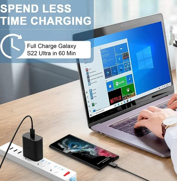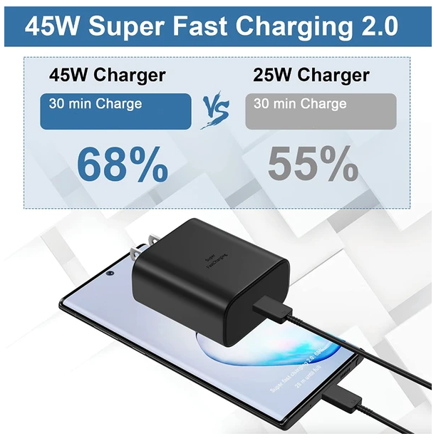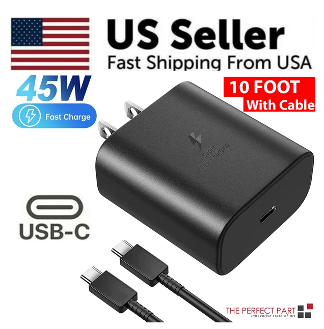 45W USB-C Super Fast Wall Charger 10FT Cable For Galaxy S20 S21 S22 S23
