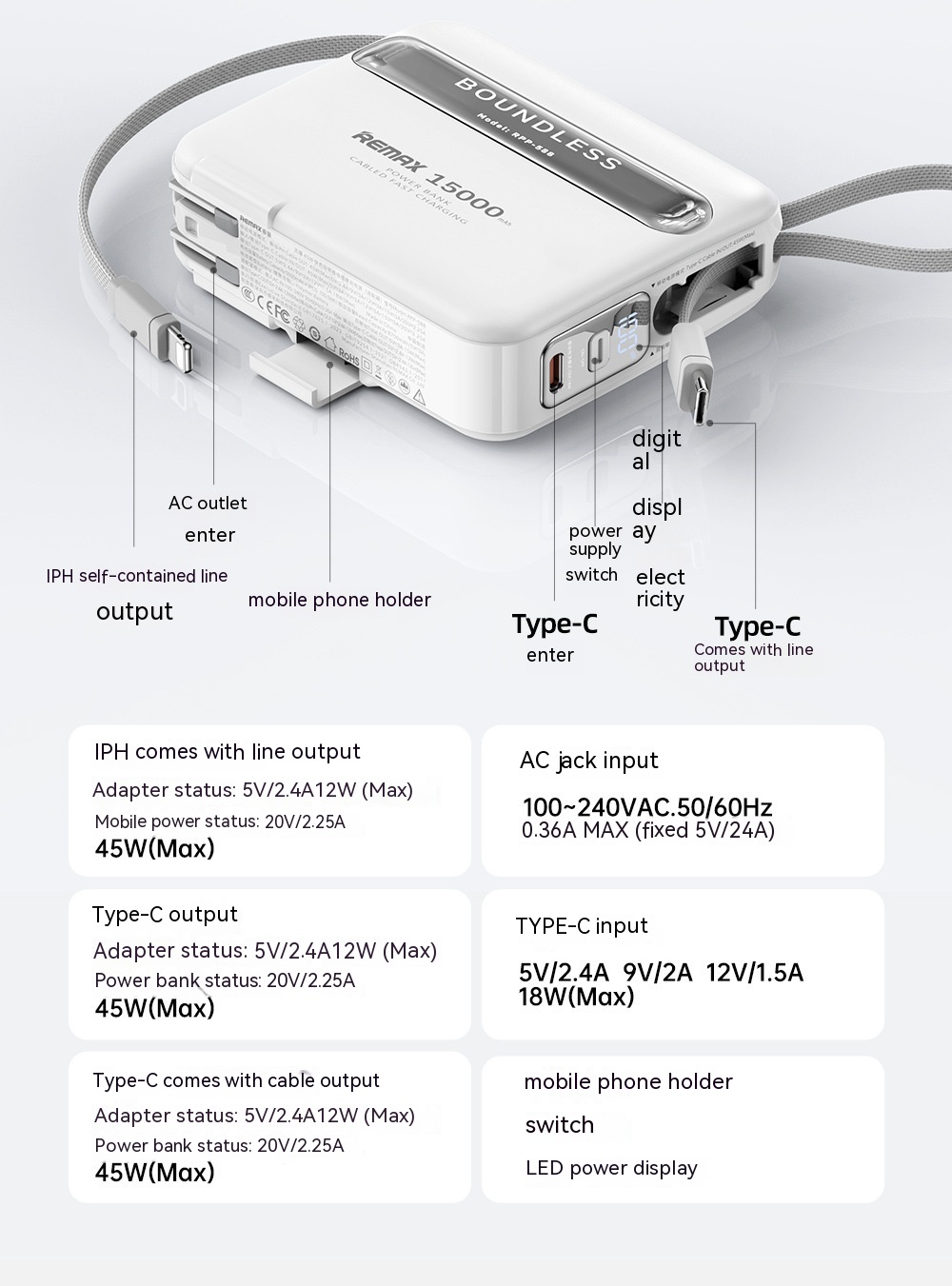45W With Cable Fast Charge Mobile Power Portable