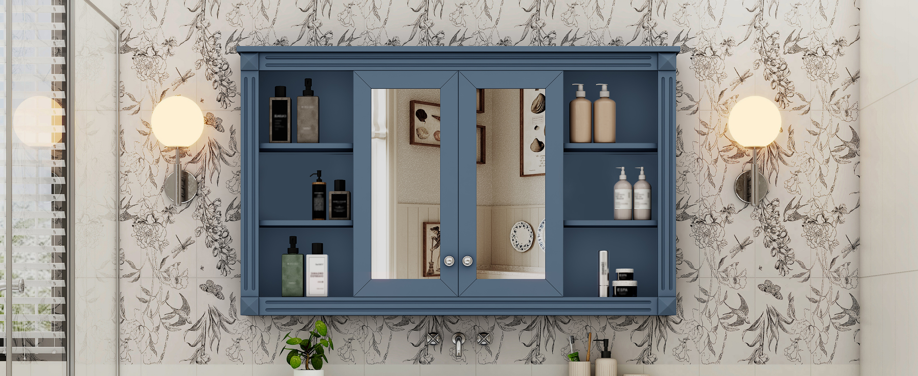 Product Name:47 Inch Bathroom Mirror Cabinet with Storage, Adjustable Shelf and Open Shelves, Wall Mounted Medicine Cabinet for Bathroom, Bedroom, Vanity