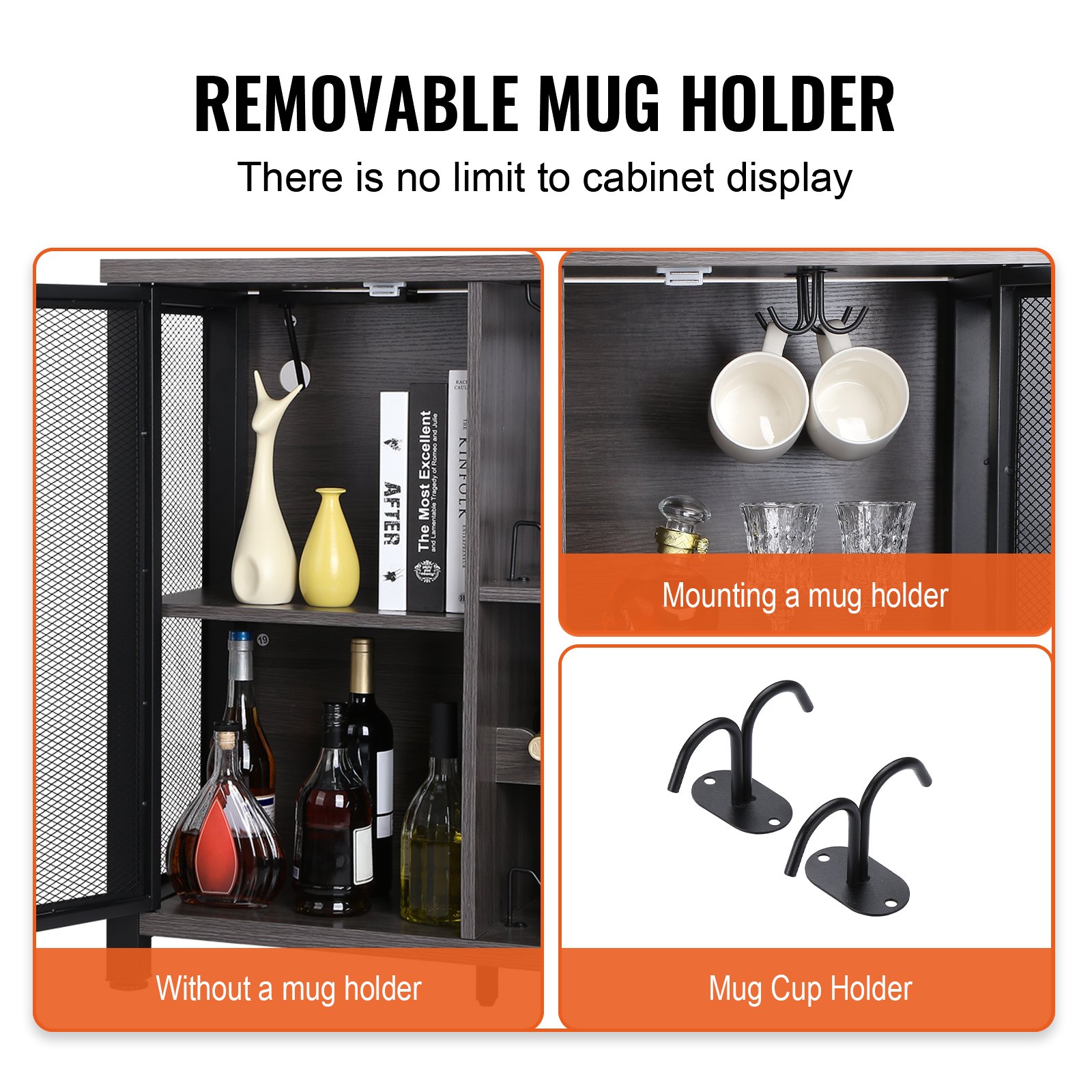 Master-level Craftsmanship: Get ready for thoughtful details built to stand out above the rest! This wine table boasts removable mug holders. Depending on your choice, you can organize your mugs or display other stuff like books.