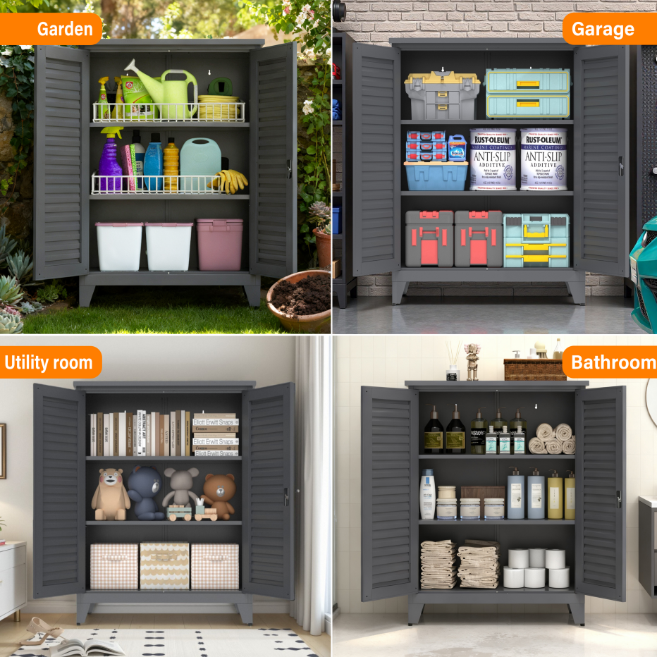 Product Name:47'' Tall Metal Tool Storage Cabinet, with Ample Storage Space for Garage,Warehouse,Garden,Office, Living Room,Bathroom,Utility Room ( Slate )