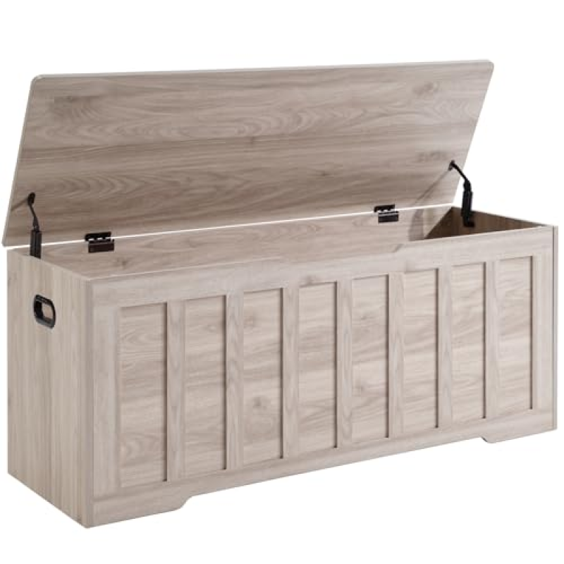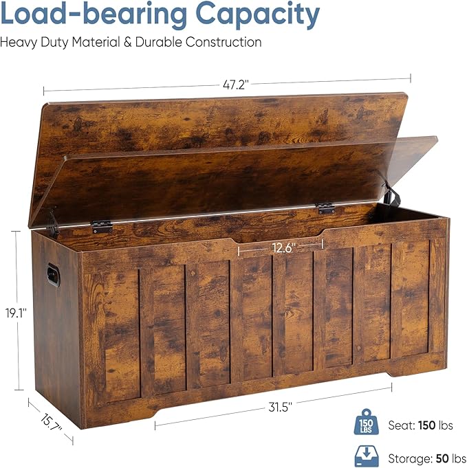 This extra-large storage chest measures 47.2" L × 15.7" W × 19.1" H, providing generous space for clothes, shoes, toys, seasonal items and more. Despite its large capacity, it has a compact footprint, making it ideal for organizing any room in your home.