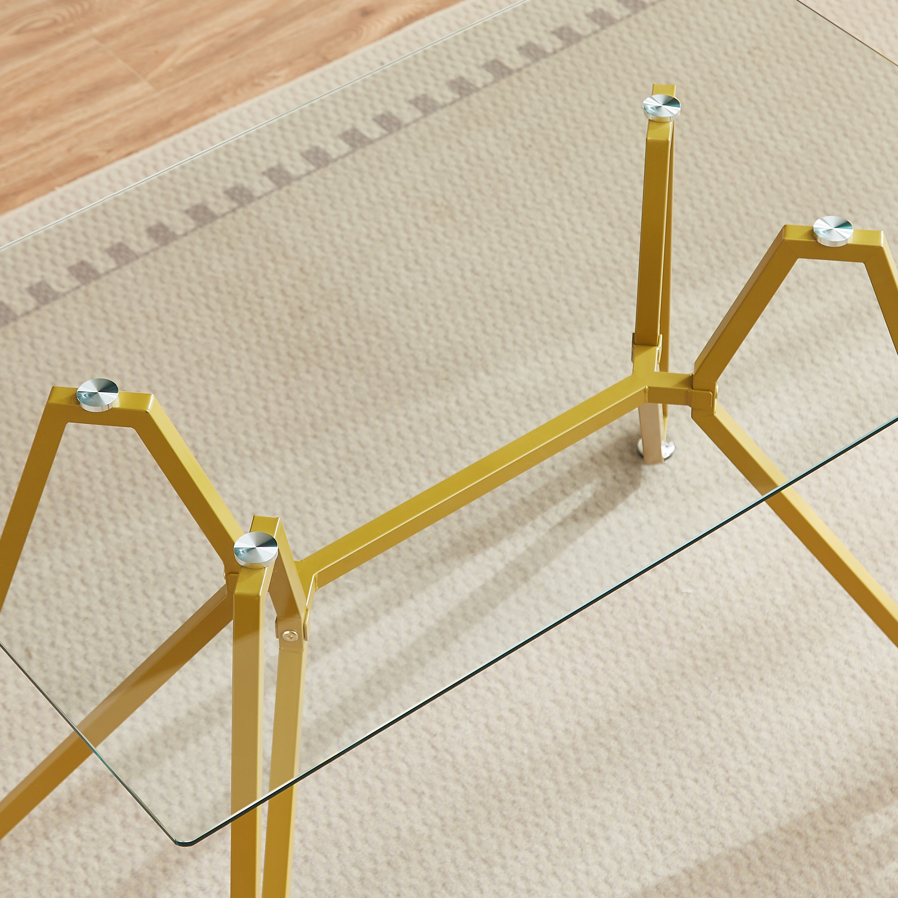 Product Name:47.3-inch rectangular glass dining table, suitable for 1-6 people, modern style home kitchen dining table, equipped with sturdy metal table legs,suitable for dining room,living rooms, offices, Gold