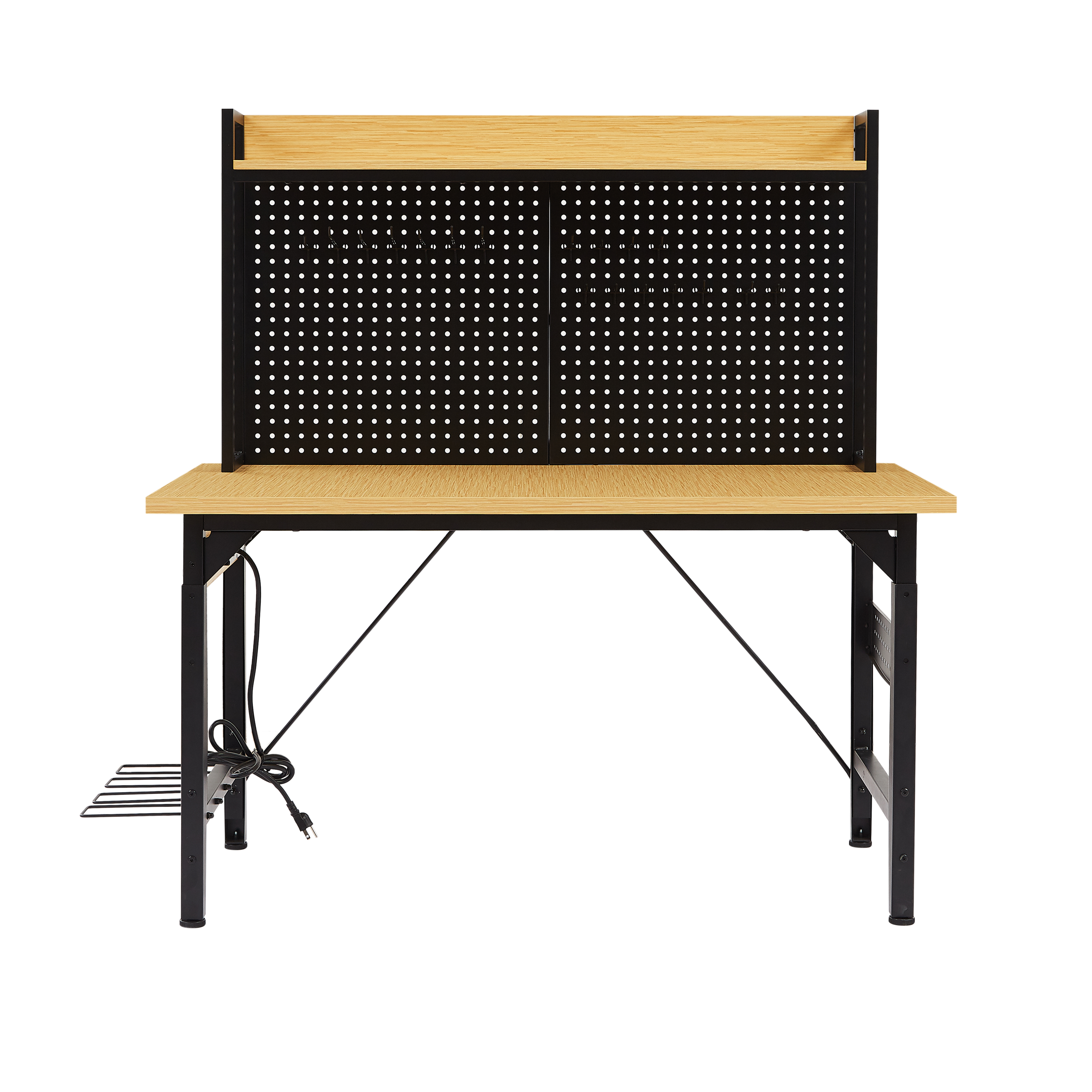 Product Name:48''Adjustable Workbench with pegboard, Heavy Duty Wooden Desktop Workbench with Wheels, 1600 lb. Load Capacity, Rolling Workbench with AC/USB Outlet, Hooks, Shelf, for Garage, Workshop, Office, Home.