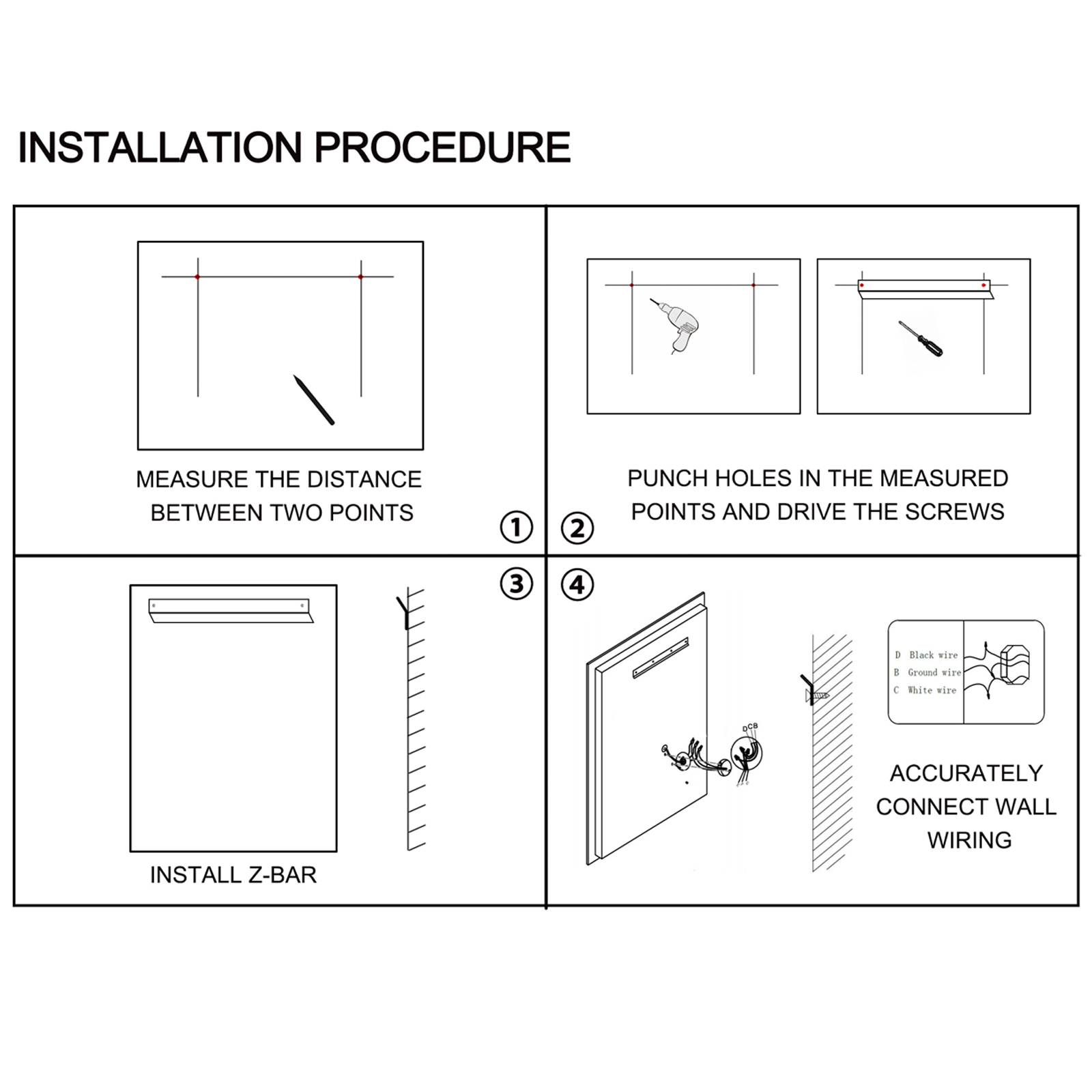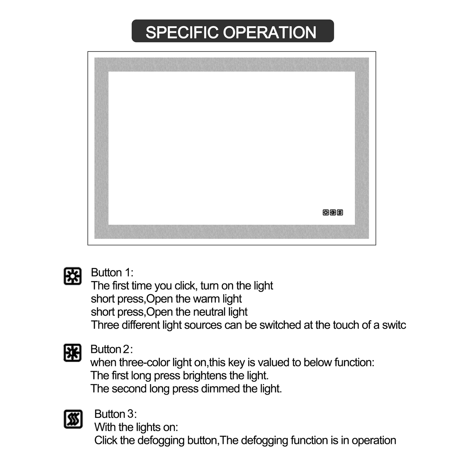 Lights & Super BrightColors Changeable and Brightness DimmableEasy to Install and Powered by Hard WireThe lighting mirrors are bright enough for makeup or shave or beauty care