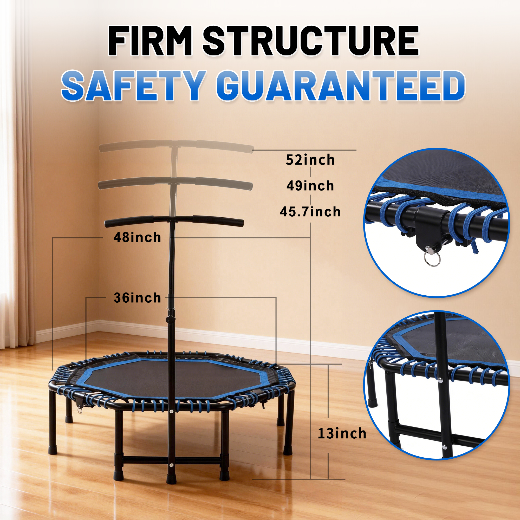 Product Name:48 inch Foldable Fitness Trampoline With Adjustable Handlebar for Adults, Max Load 450lbs,With Durable Bungee Ropes,Stable & Quiet, Rebounder for Cardio & Strength Training, Home/Gym ,Jumping Exercise