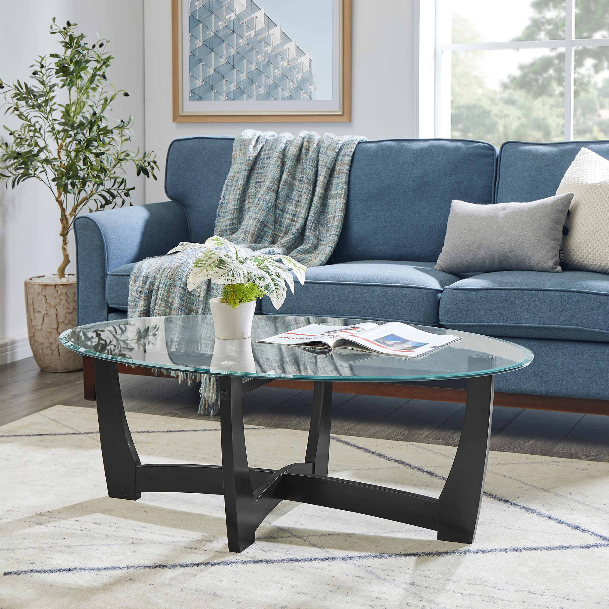 Product Name:48 Inch Oval Glass Coffee Table, Black Round Coffee Table Center Table with Glass Top, Small Coffee Table for Living Room, Office and Apartment