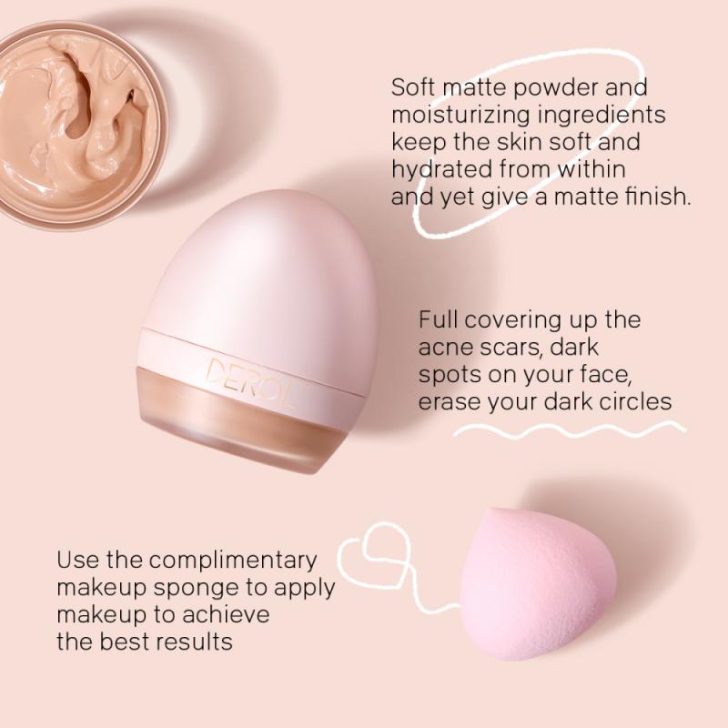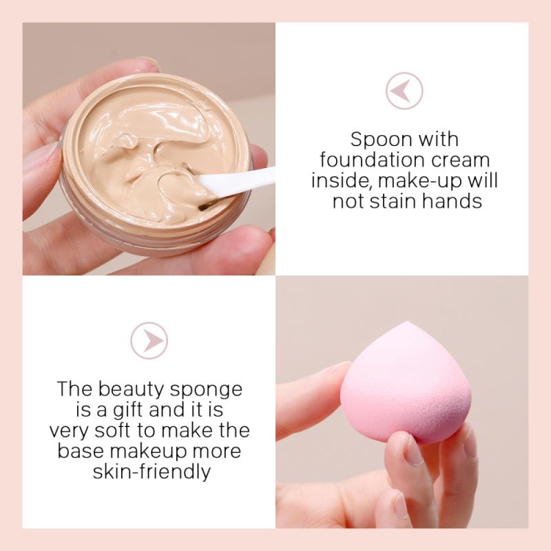 The product comes with a small spoon with a makeup sponge inside. It is small and light, convenient to store and carry, and you can touch up makeup anytime, anywhere.