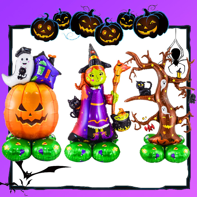 Color: three-dimensional base halloween witch, three-dimensional base pumpkin, three-dimensional base halloween tree