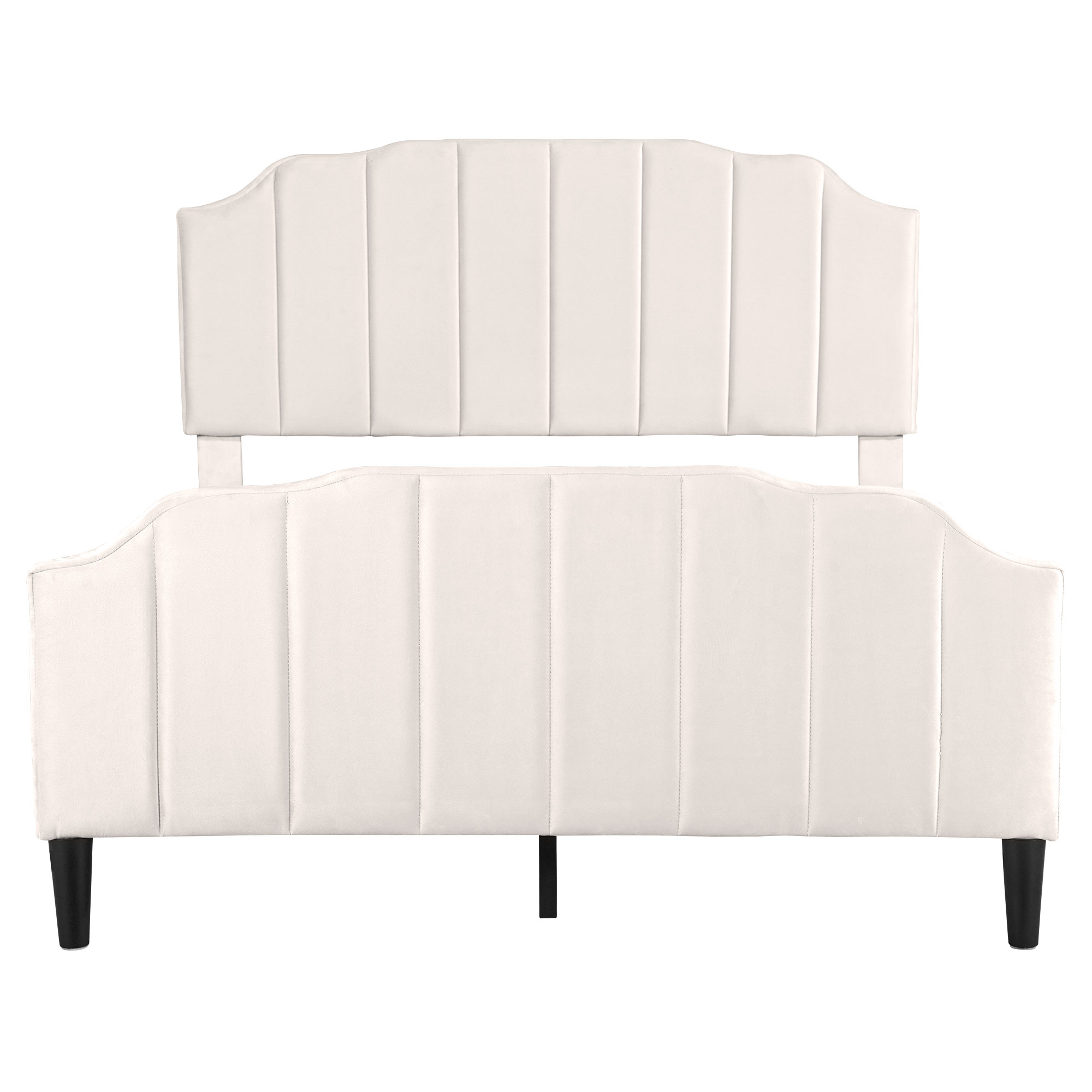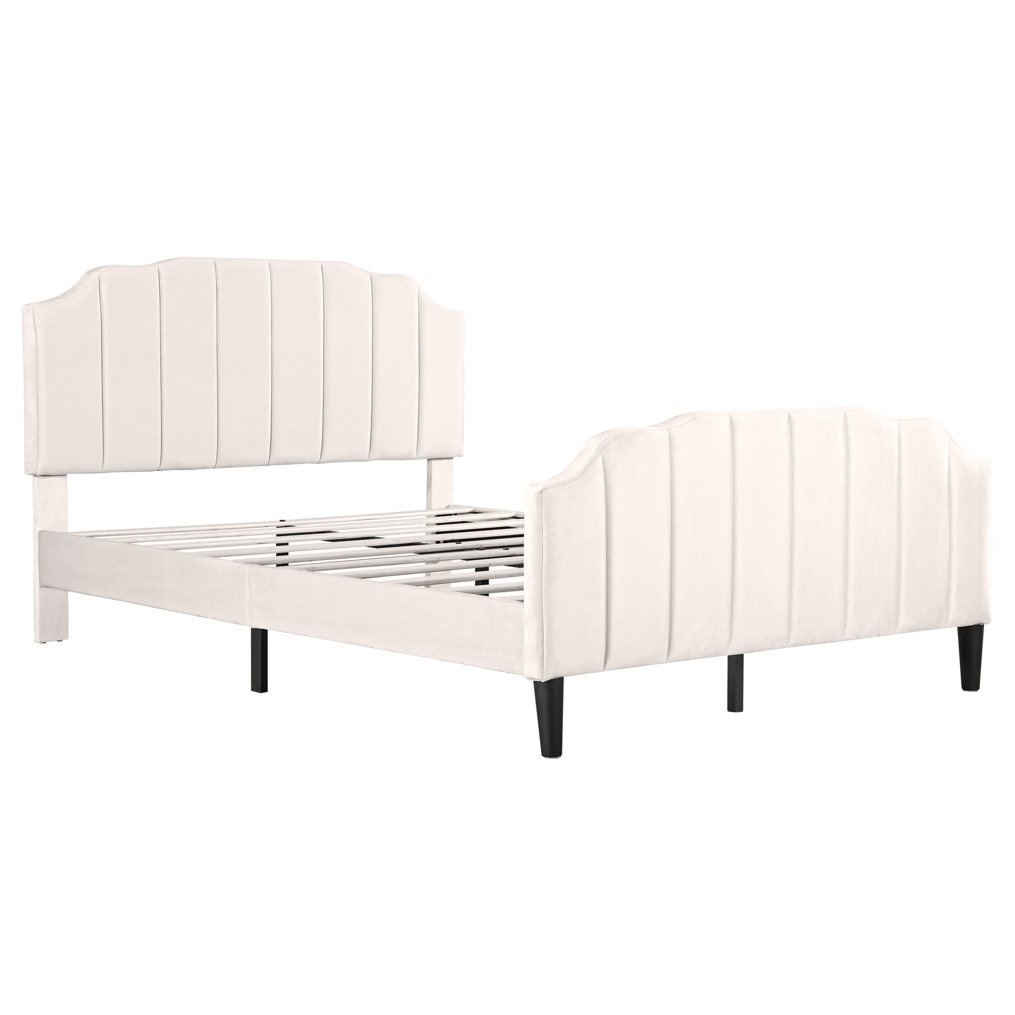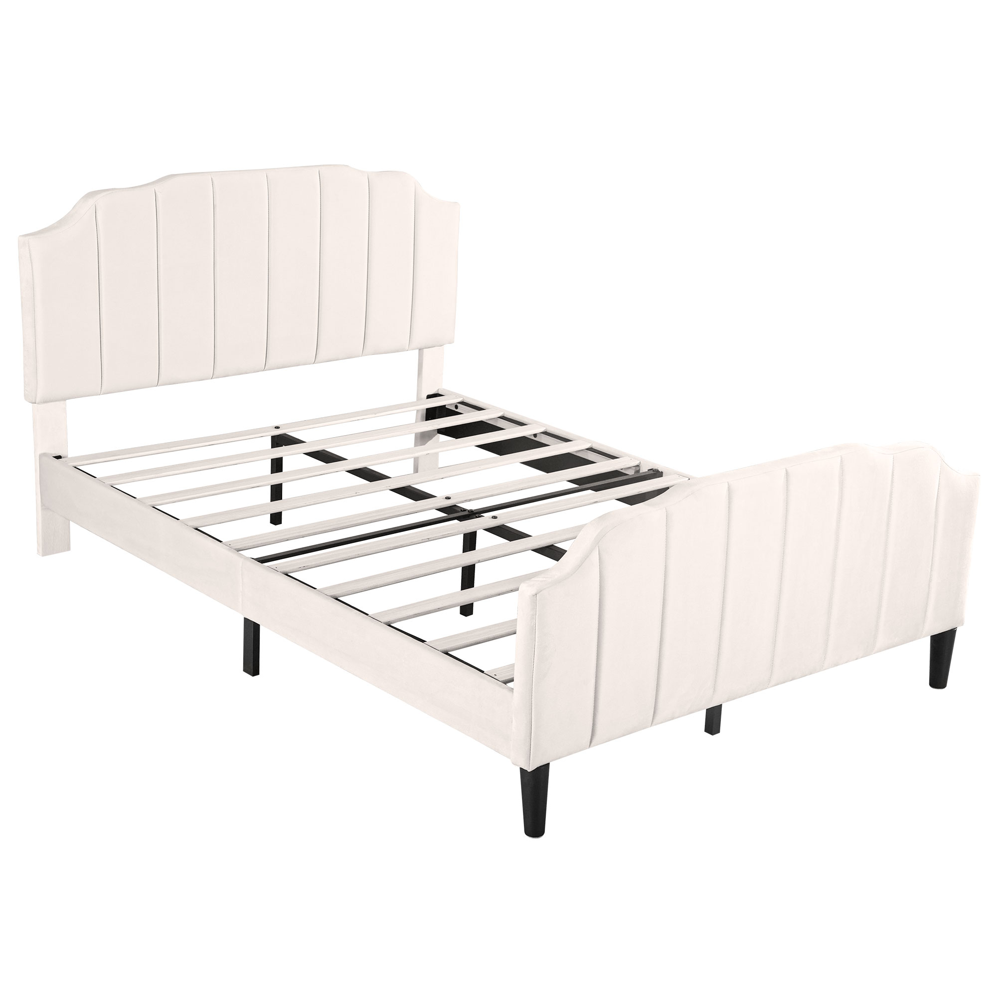 This upholstered platform bed is designed attractive channel-tufted headboard and footboard as well as maintain its stylish look with clean lines that blend well with the surroundings. This velvet upholstered headboard has variable adjustable mounting positions to creates a versatile choice for mattresses of different thicknesses. The bed frame is made of sturdy metal and wood construction to provide your family with a comfortable and safe sleep environment. Enough bottom space for easy storage and ensures air moves freely around your mattress to keep it fresh for years to come. It provides a fun and adorable place for you to enjoy yourselves which makes you feel easy and comfortable. Special Features - Adjustable Channel-tufted headboard - Attractive Headboard & Footboard Appearance - Sturdy Metal-Wood Support - Bottom space for easy storage and cleaning - Easy assembly and care - Suitable for various home styles