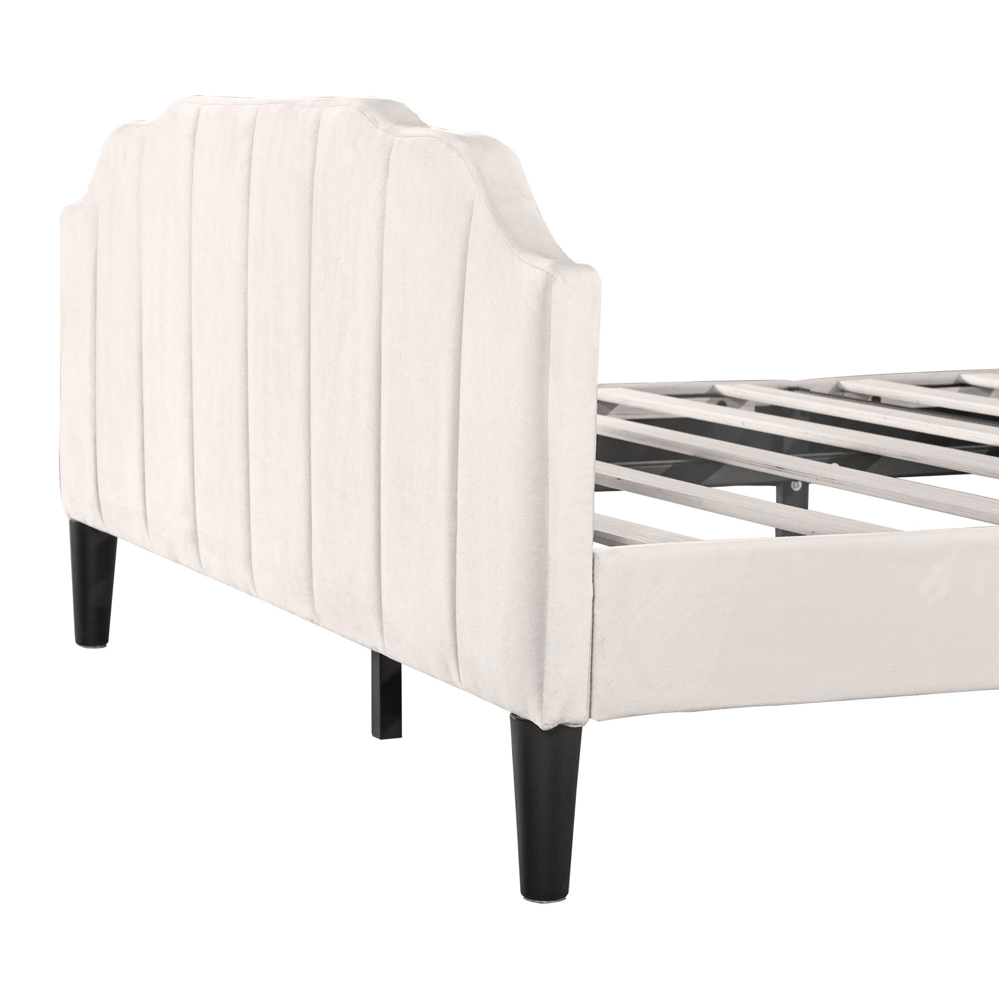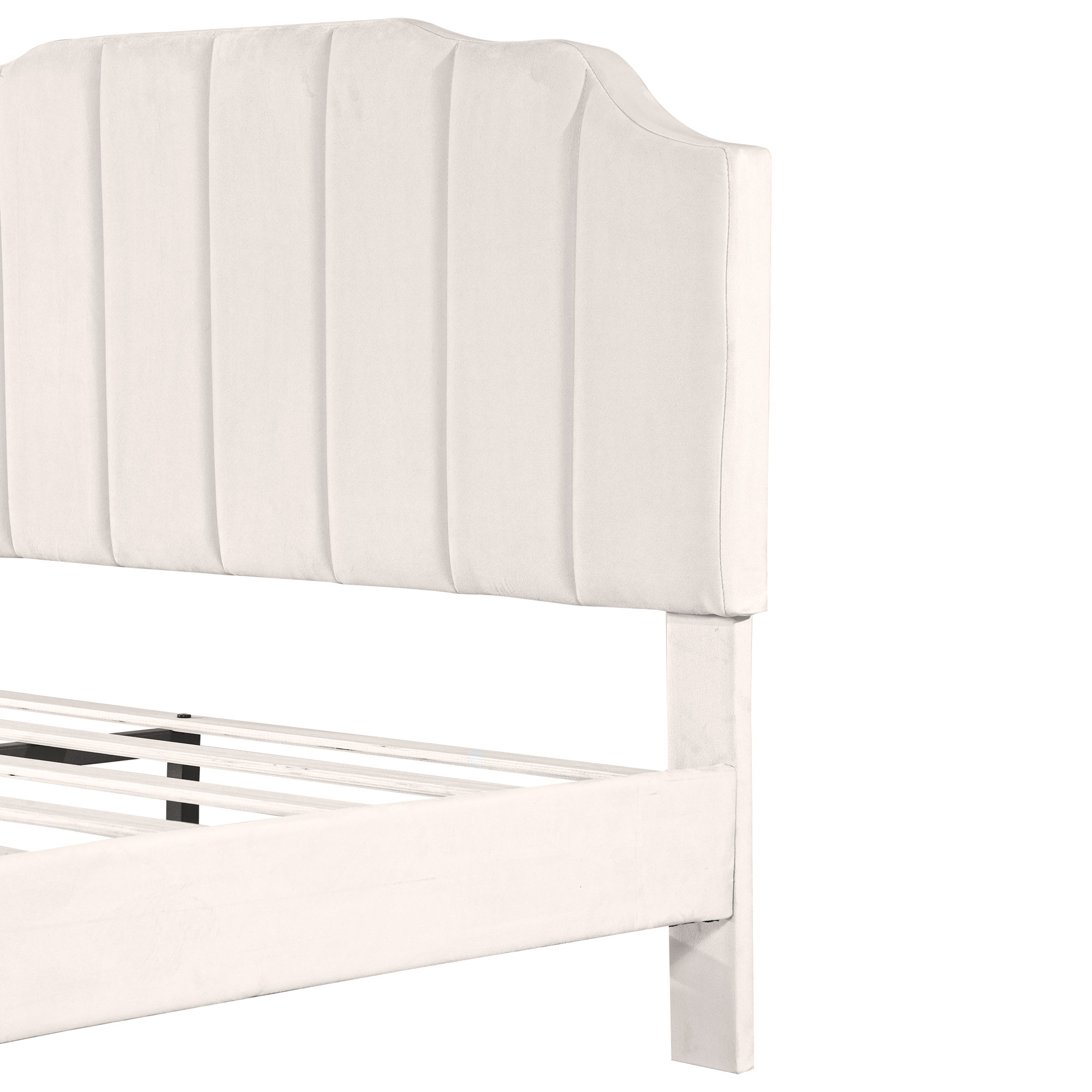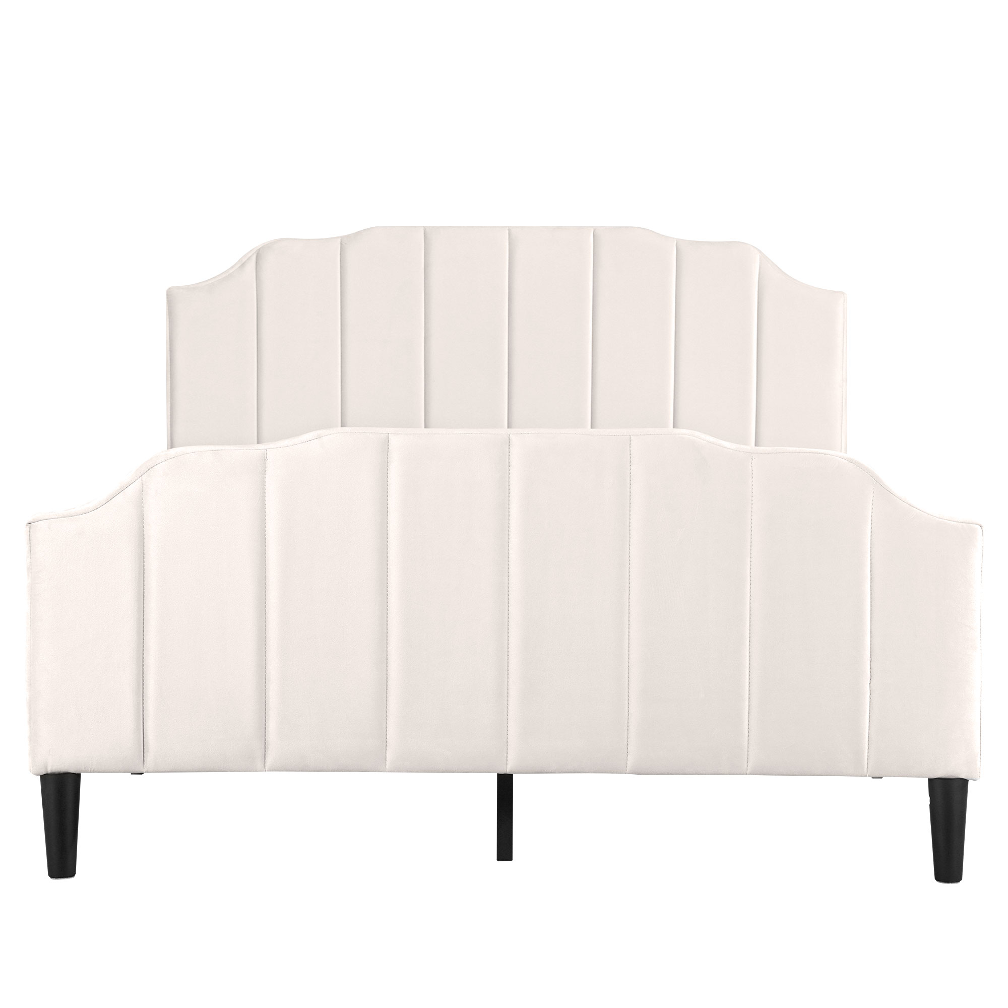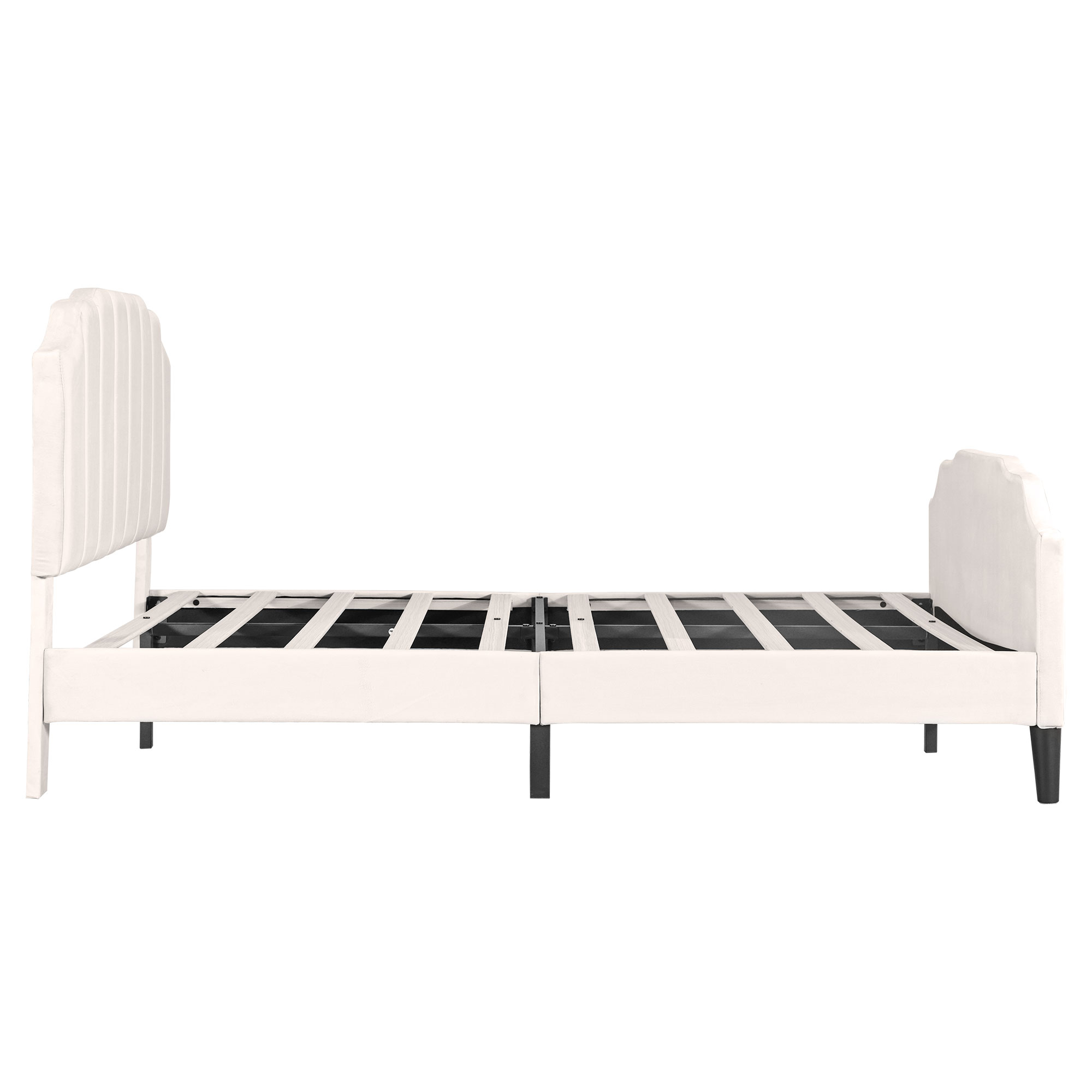 This upholstered platform bed is designed attractive channel-tufted headboard and footboard as well as maintain its stylish look with clean lines that blend well with the surroundings. This velvet upholstered headboard has variable adjustable mounting positions to creates a versatile choice for mattresses of different thicknesses. The bed frame is made of sturdy metal and wood construction to provide your family with a comfortable and safe sleep environment. Enough bottom space for easy storage and ensures air moves freely around your mattress to keep it fresh for years to come. It provides a fun and adorable place for you to enjoy yourselves which makes you feel easy and comfortable. Special Features - Adjustable Channel-tufted headboard - Attractive Headboard & Footboard Appearance - Sturdy Metal-Wood Support - Bottom space for easy storage and cleaning - Easy assembly and care - Suitable for various home styles