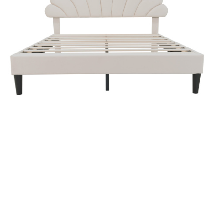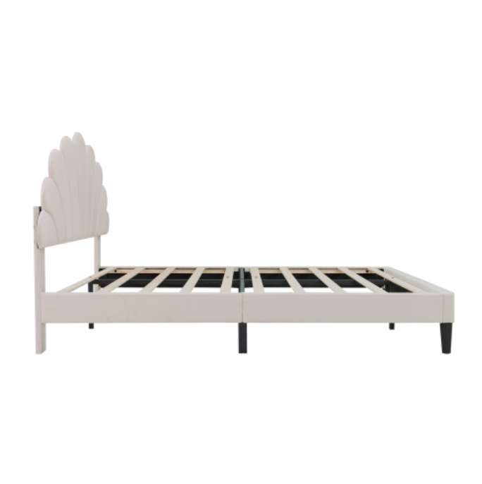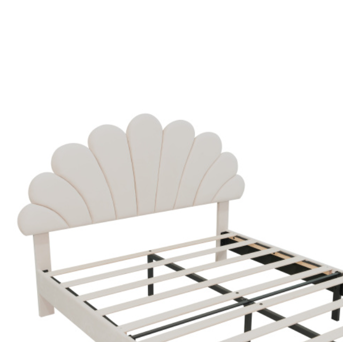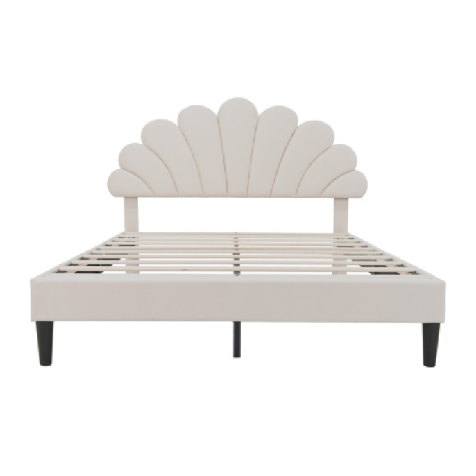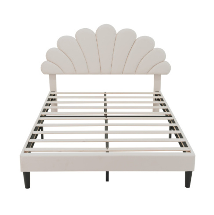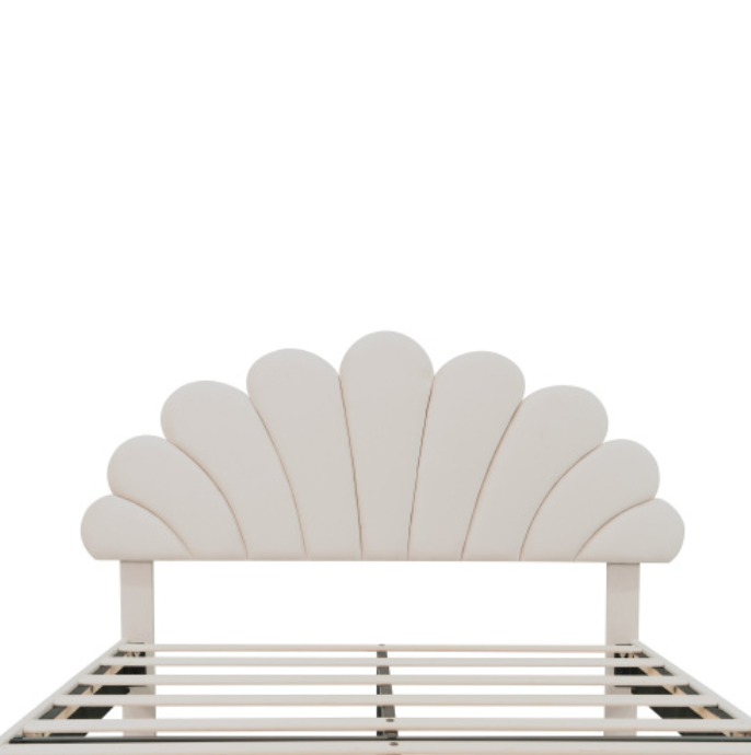 Product Name:4ft6 Double Upholstered Velvet Bed Frame, with Adjustable Chic Petal Headboard, Velvet Platform Bed Frame with Solid Wood Slat, No Box Spring Needed, Easy Assembly, Beige