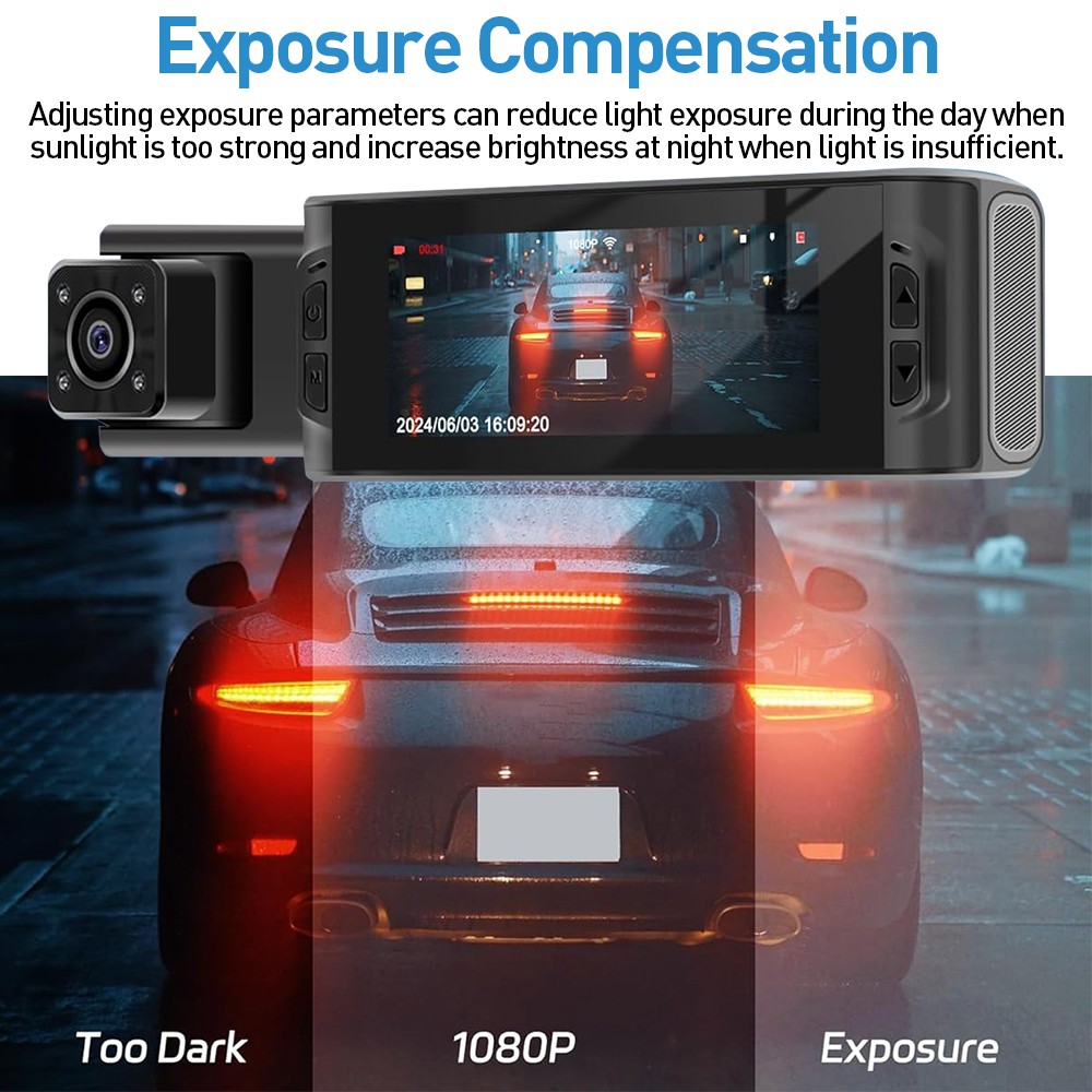 2. Exposure adjustment. Set the exposure parameter adjustment, which can reduce the light in the daytime when there is too much daylight and increase the brightness in the nighttime when there is not enough light, so as to make you feel more at ease while driving.
