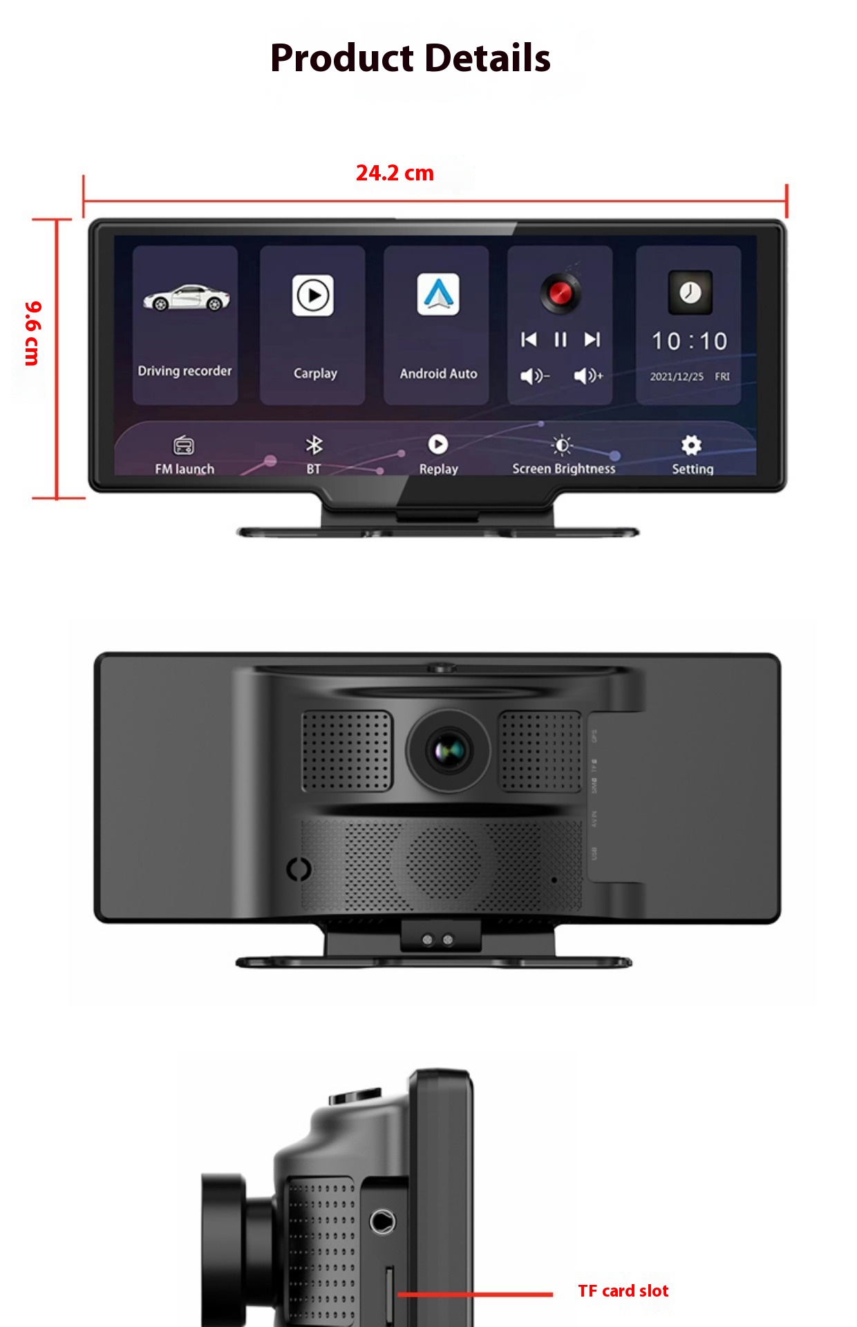 Host+rear camera+car charger+AUX audio cable+instruction manual