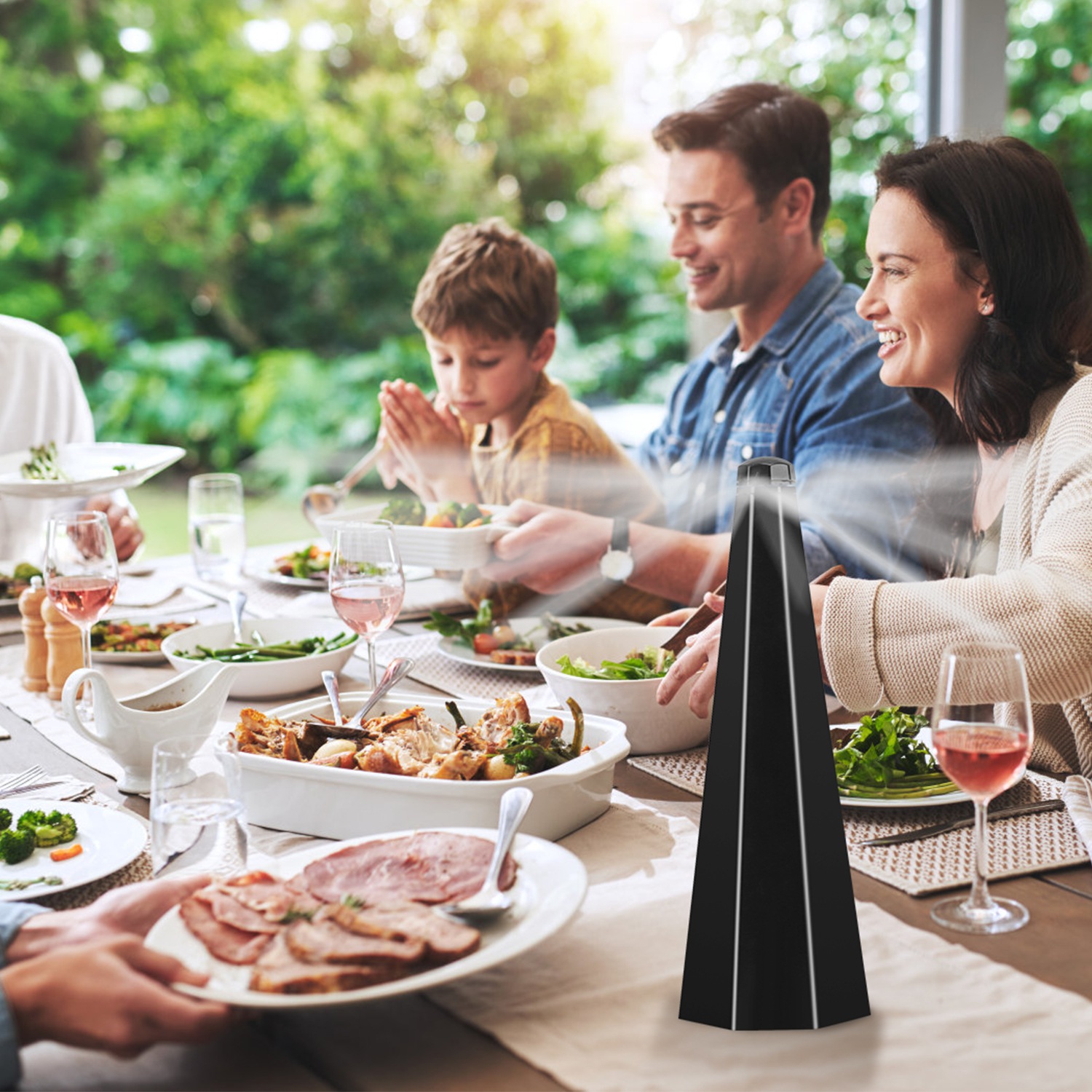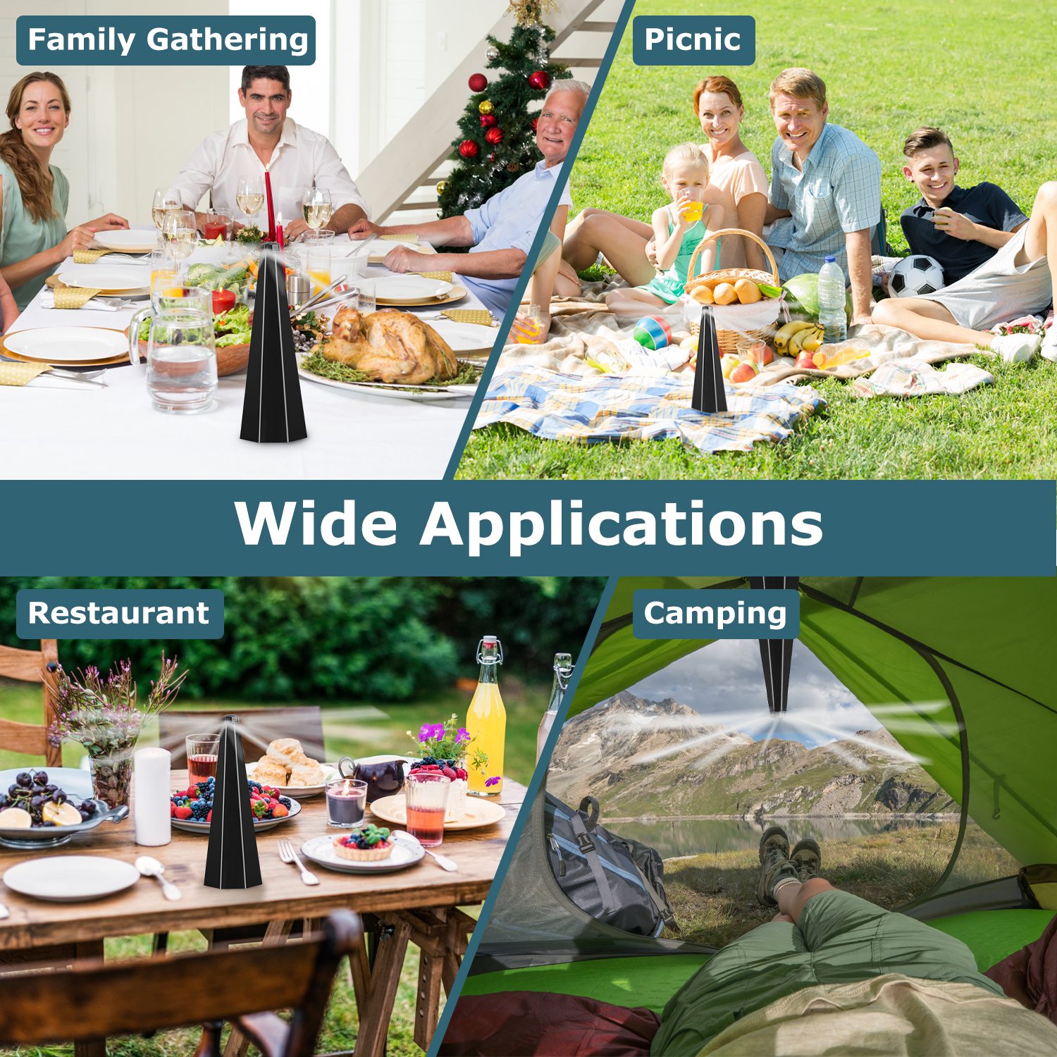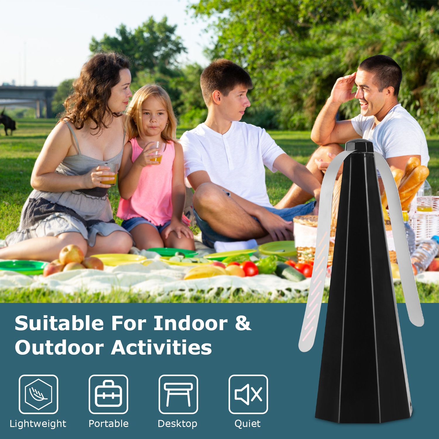 *No More Flies Around*:Flies have compound eyes that are very sensitive to movement. The continuous and rapid rotation of the fan blades is a visual signal that warns the flies of potential danger. As the blades spin,our bug fan create a flies-hated radius on table,effectively preventing annoyed flies or insects from interrupting your tranquility of meal.