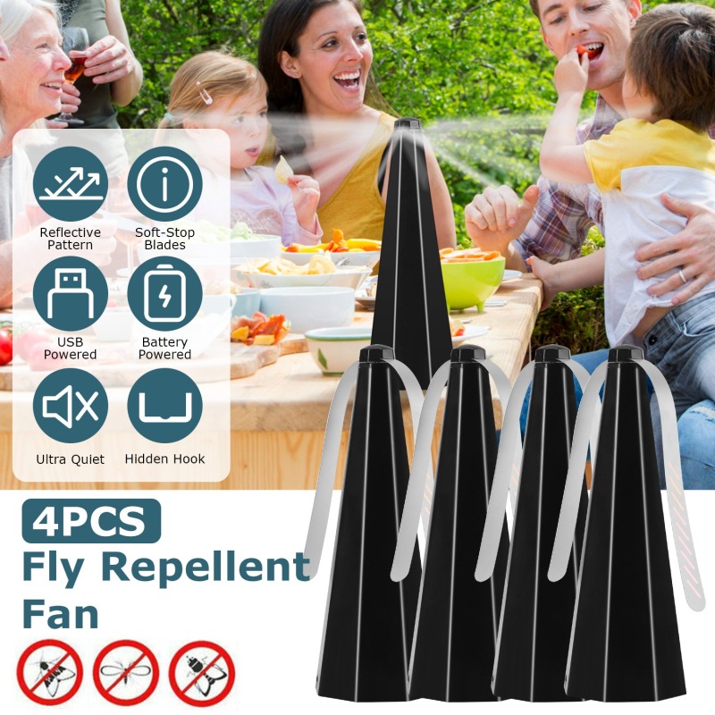 4Pack Fly Table Fans Battery USB Powered Bug Fans Food Fans Fly Table Spinners Traps With Hook For Party BBQ Picnic Camping
