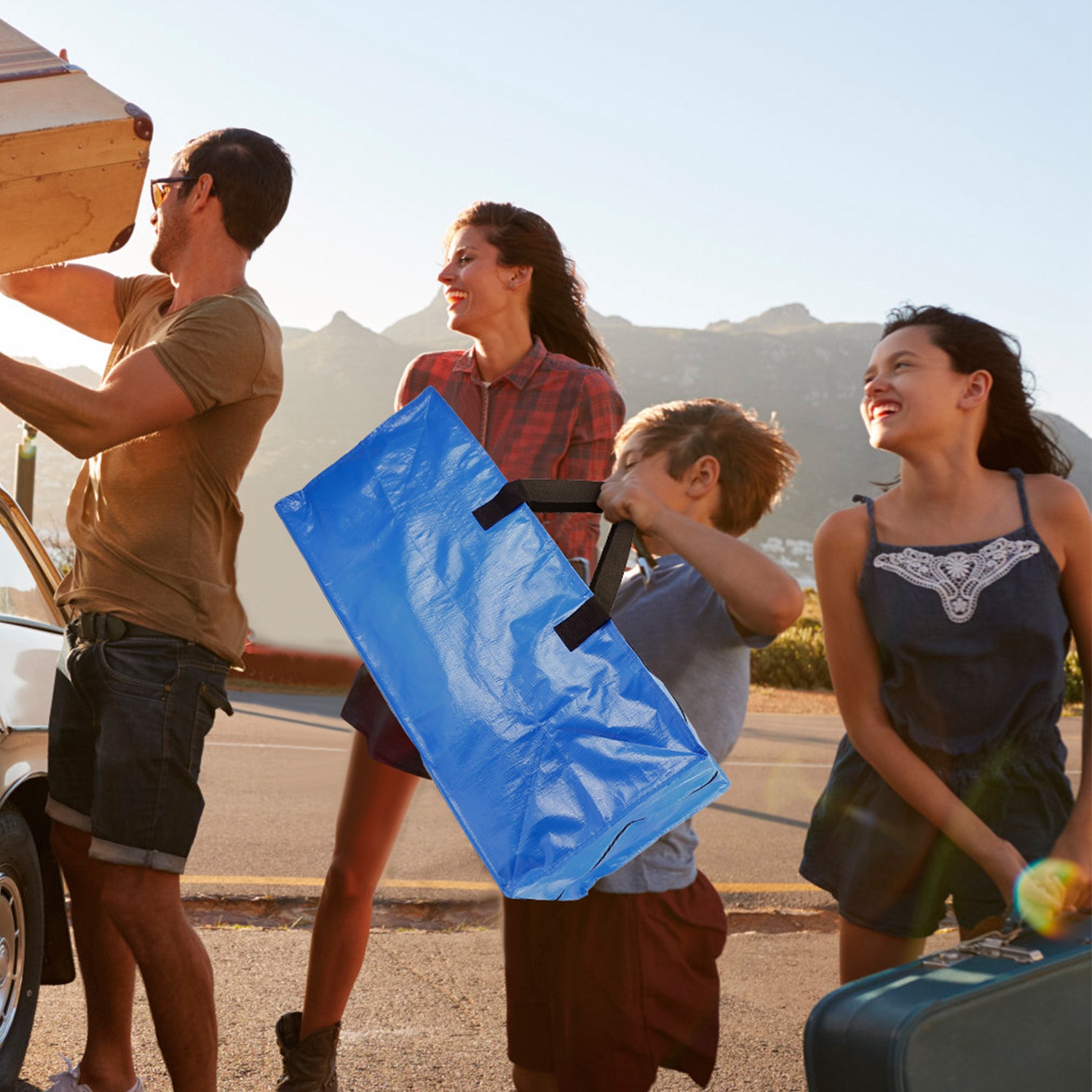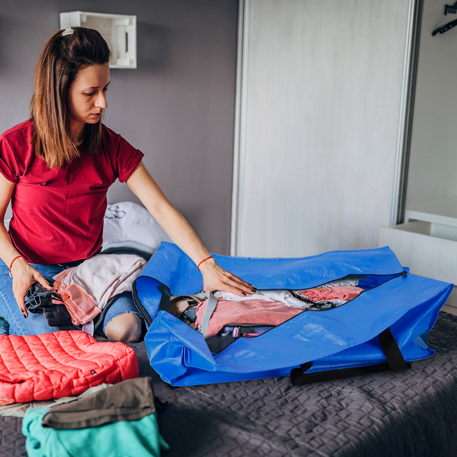 4Pcs Moving Bags Heavy Duty Container Reusable Plastic Totes Blue Moving Bin Zippered Storage Bag