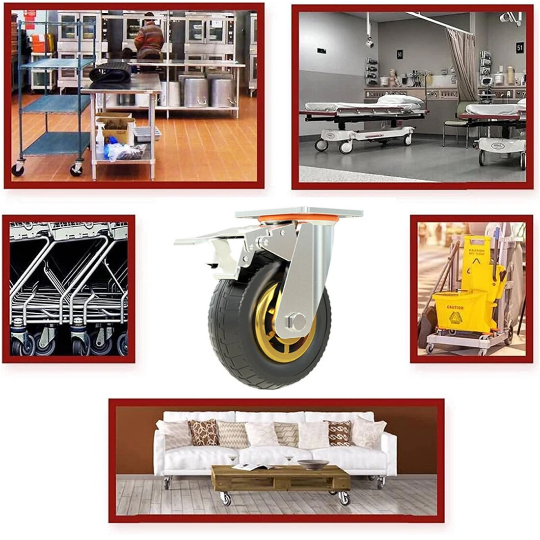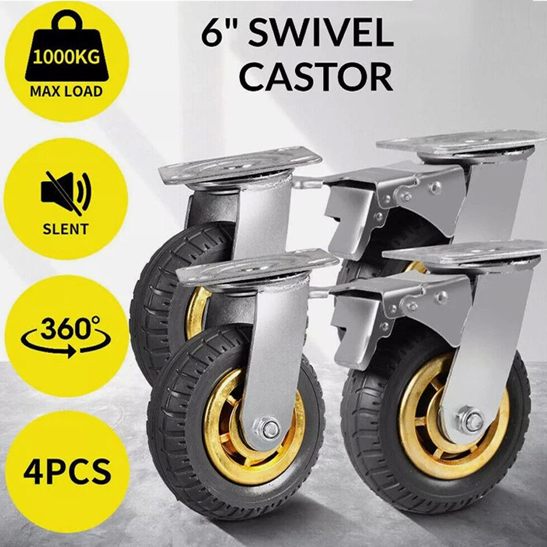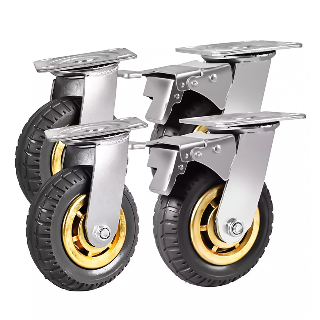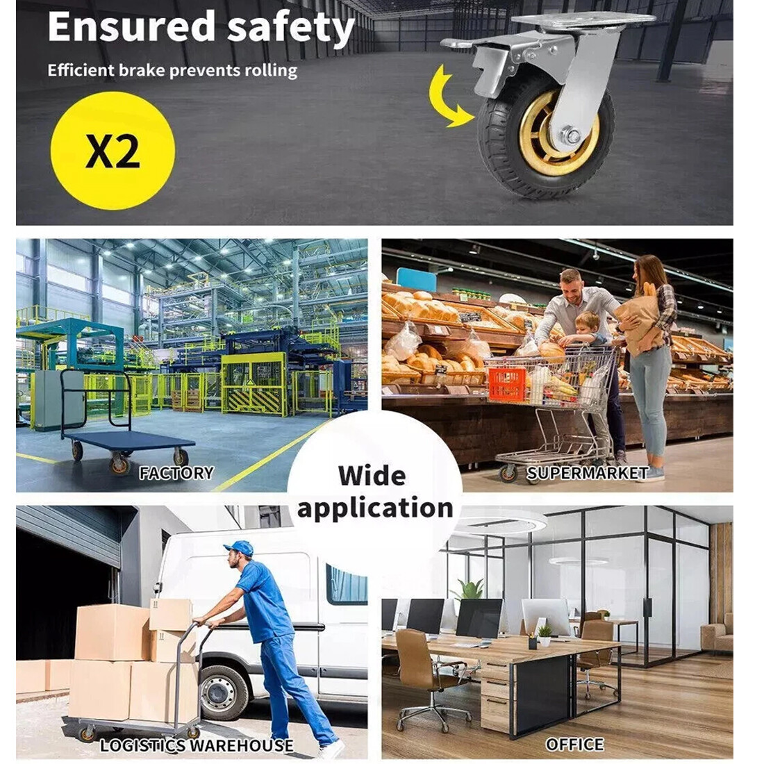 * Our industrial wheels come with 4 Pcs 150mm castor wheels, two casters with brakes for enhanced stability and secure locking; offering peace of mind in any environment. The rubber swivel casters can be used in various carts, factories, logistics, supermarket,office and other industries.
