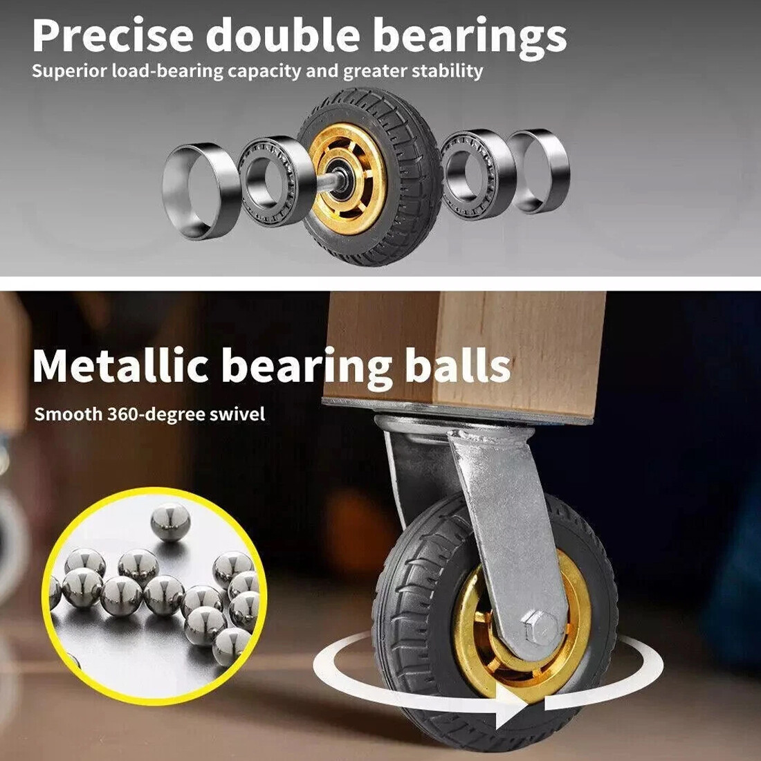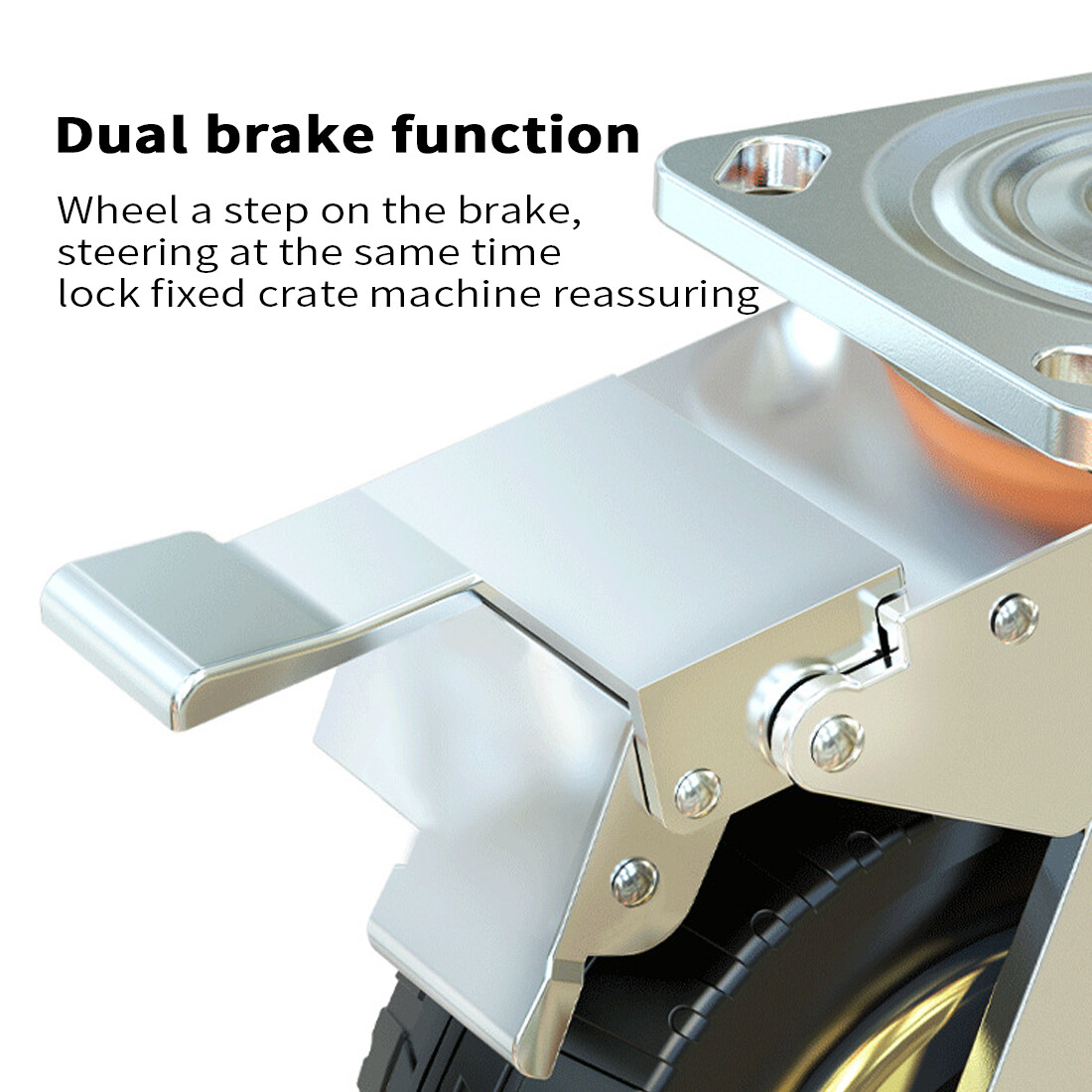 *This heavy duty castor has two 360 degree swivel wheels with brake, which can stop the wheels from rotating and ideal for navigating tight spaces effortlessly. That makes it run easily and safely to staff on moving heavy furniture. 360° swivel caster wheels achieve more flexible movement.