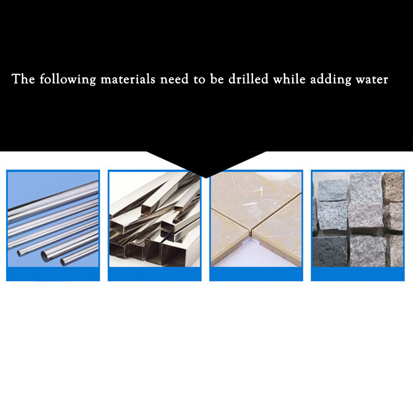 The following materials need to be drilled while adding water: stainless steel / vitrified brick / granite and other brittle materials.