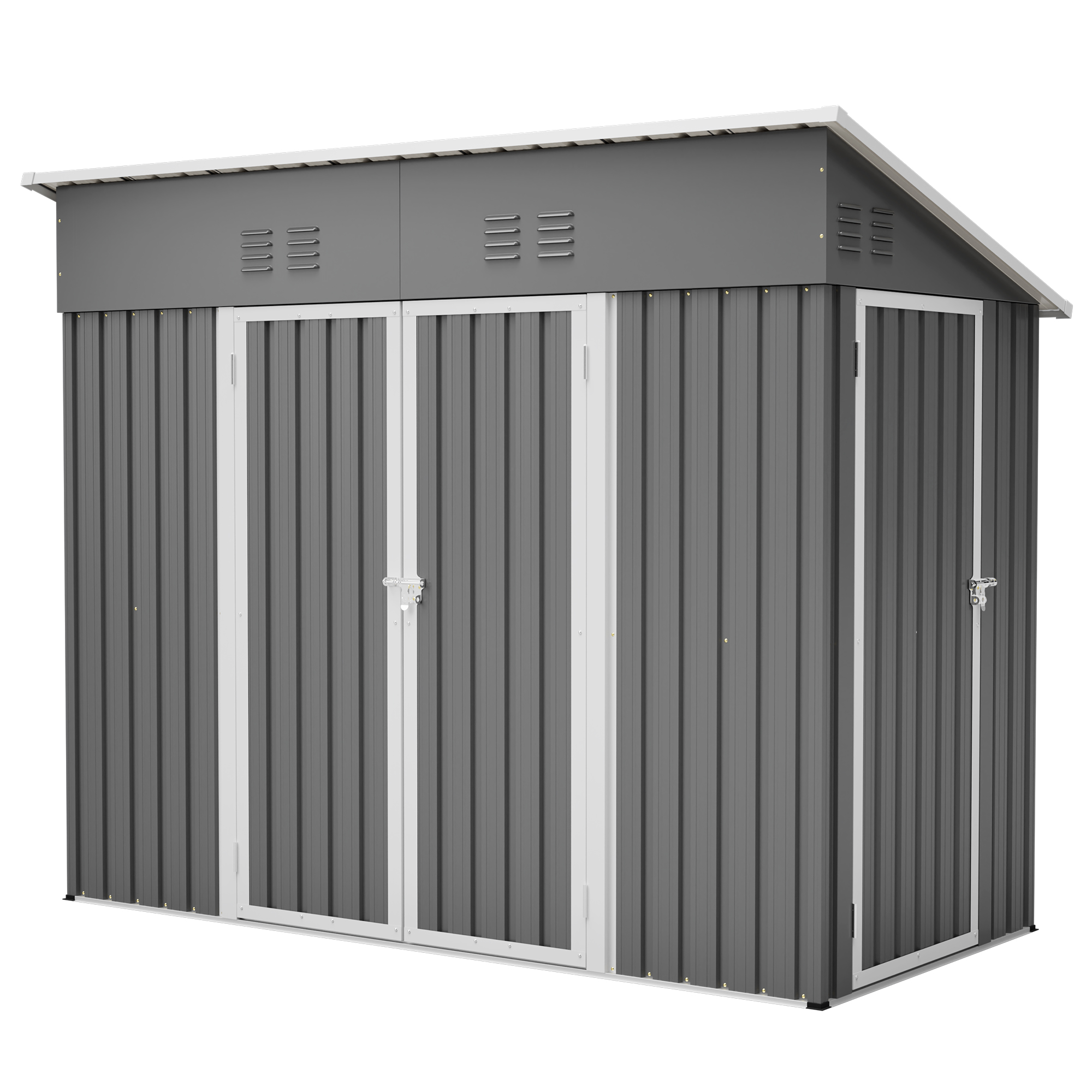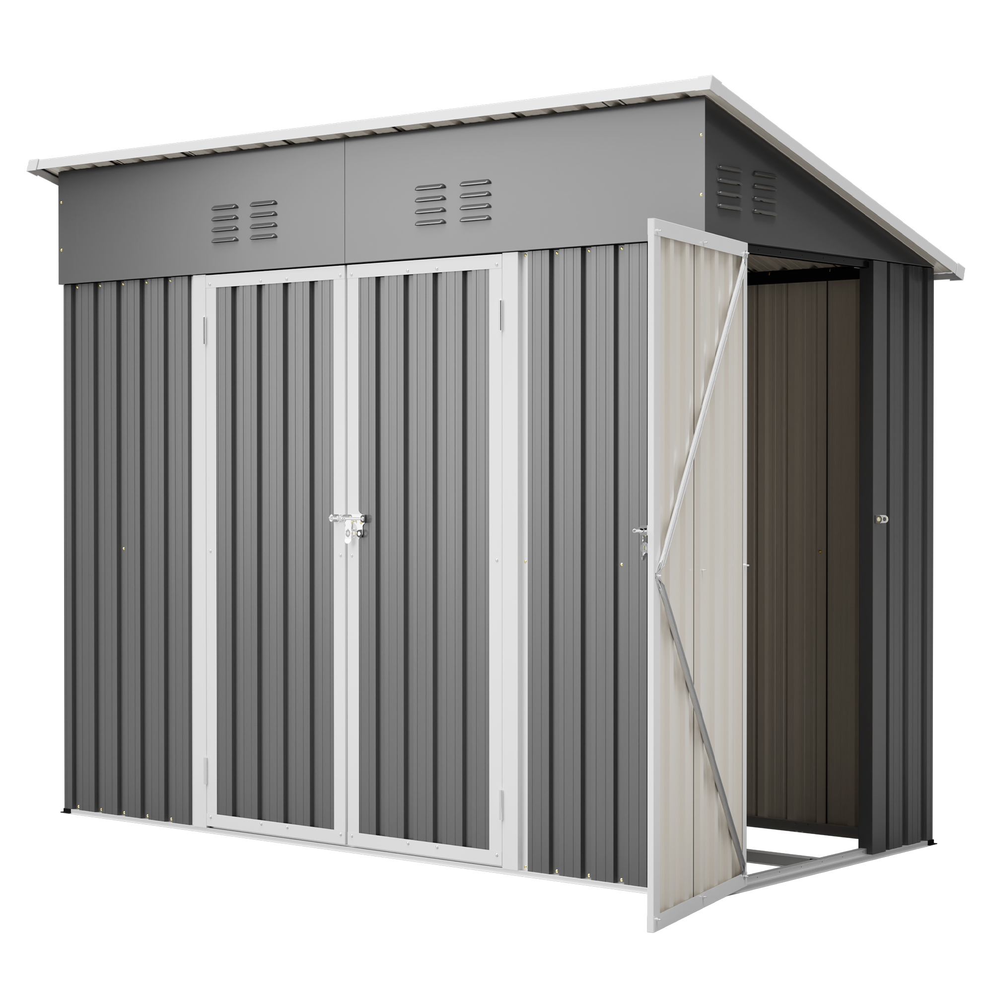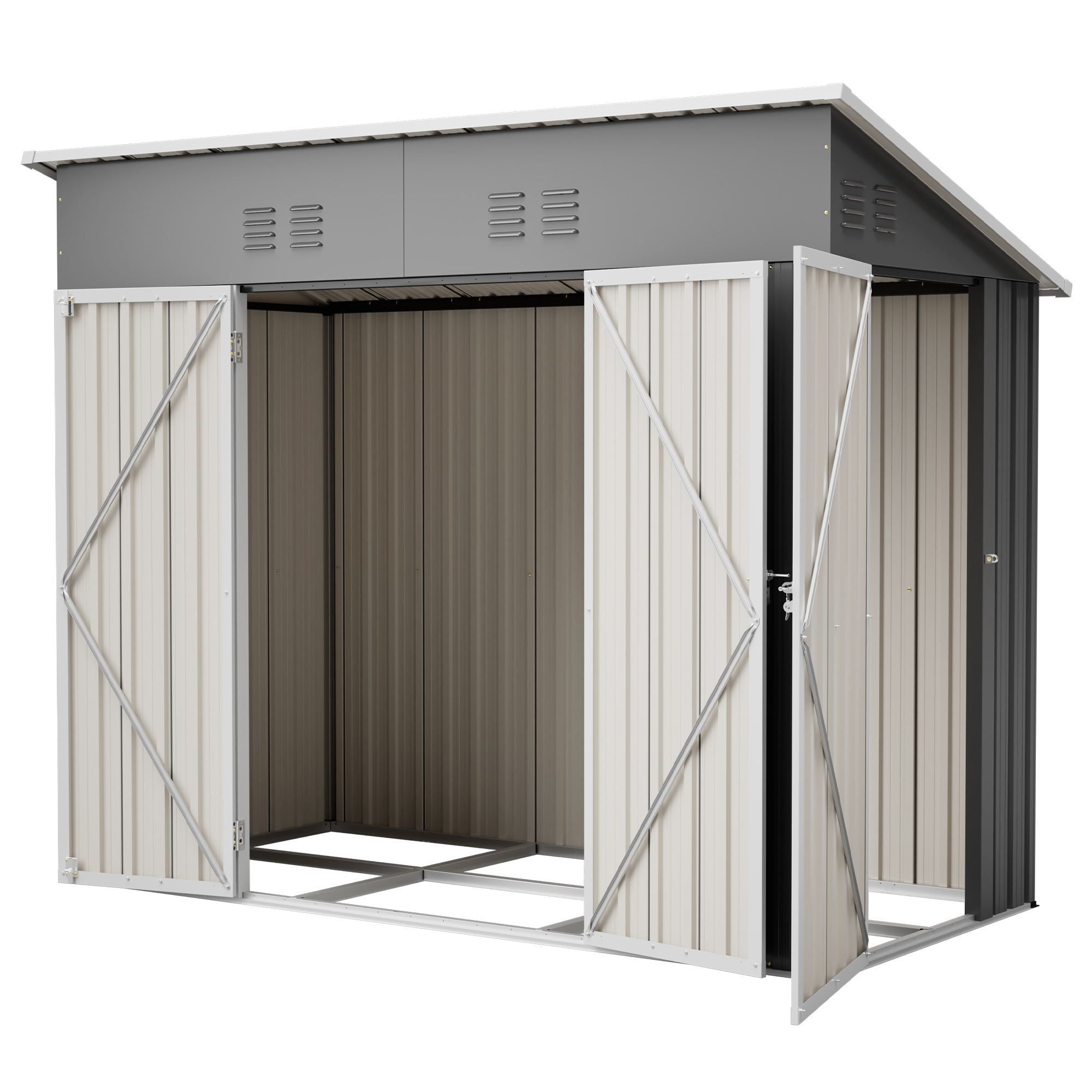 4x8 Slope-Roof Reinforced Storage Shed With Weatherproof Sloping Roof & 4 Air Vents, Heavy-Duty Sturdy Metal Frame, Left Right Optional Door, Outdoor Tool Shed Warehouse For Garden Storage Pet House