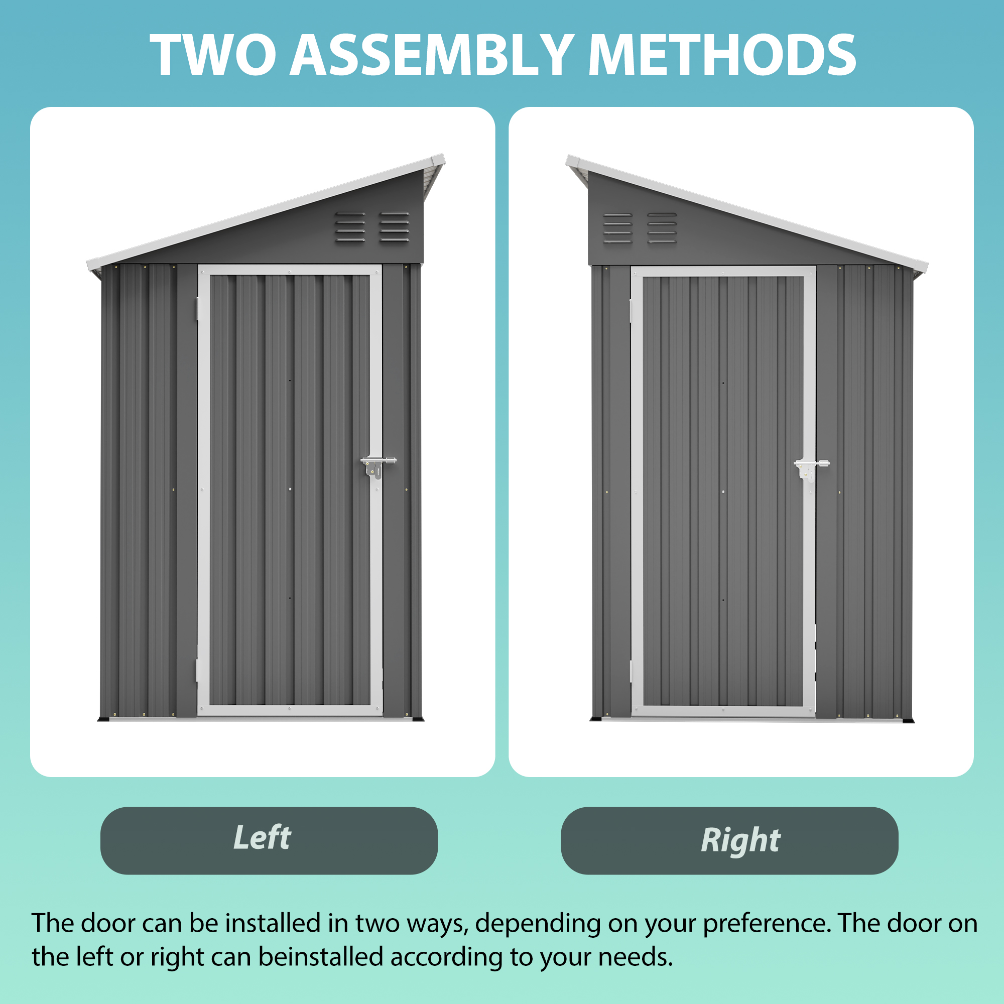 • 【Flexible Installation & Versatile Applications】The door can be installed on the left or right side to suit your space layout. Assembly is straightforward with clear instructions and complete hardware. Perfect as a tool shed, equipment warehouse, pet house, or backyard storage solution.