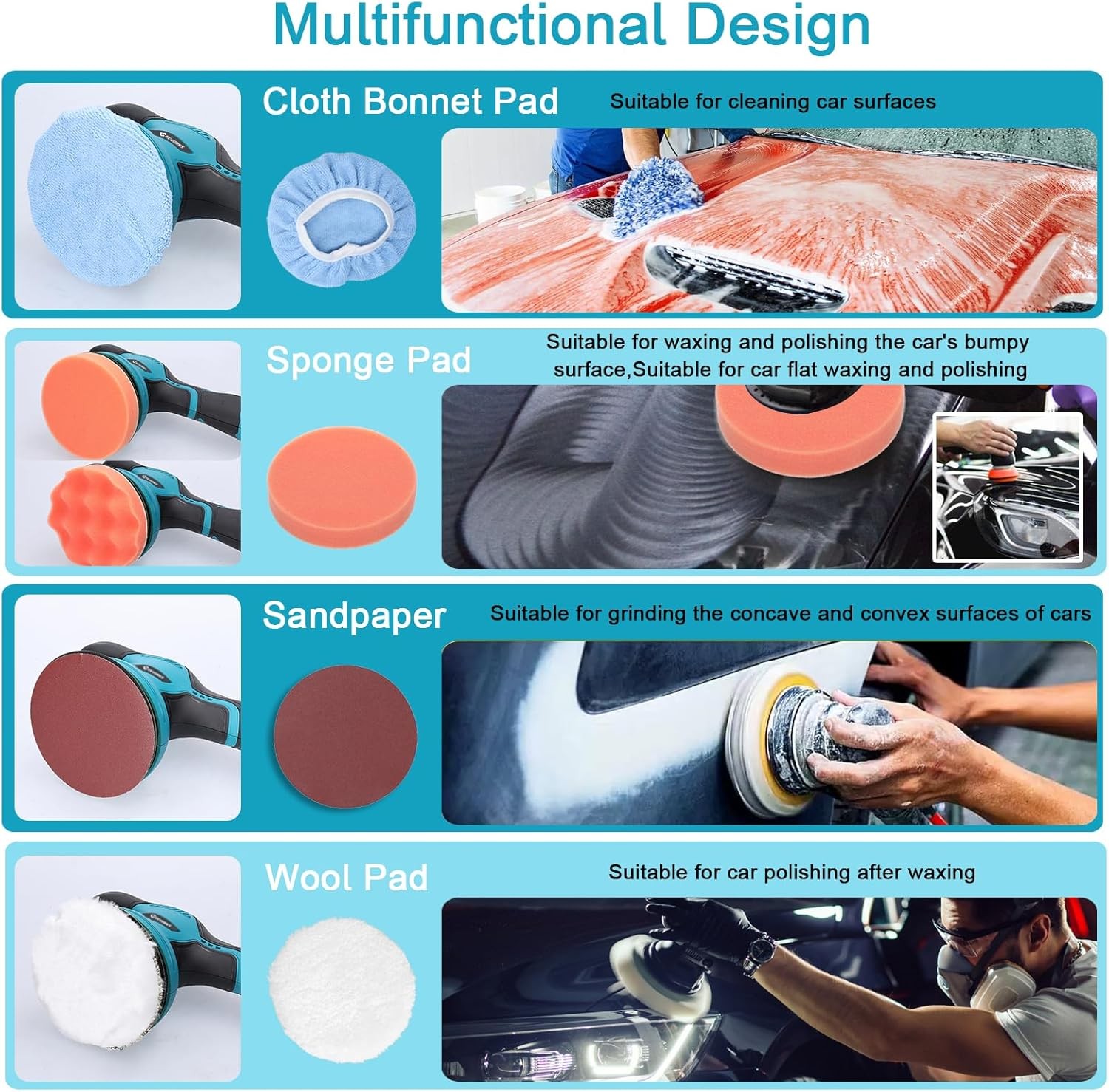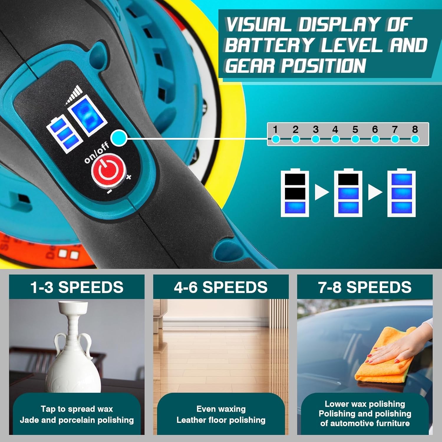 Applications: Car polishing, home floor and furniture waxing