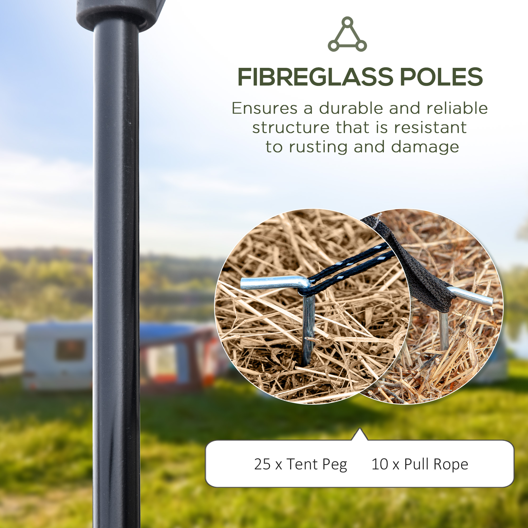 Camping number restrictions need not apply: this 5-6 man tent provides plenty of sleeping and socialising room for outdoor adventures. Using fibreglass poles for a shape which stays in shape, it's fitted with a 2000mm water-resistant polyester canopy to shield you inside safely. The side and front windows provide increased airflow and allow you to see outside/inside easily. The inner room is removable - create a single room space, or keep it separated when required.