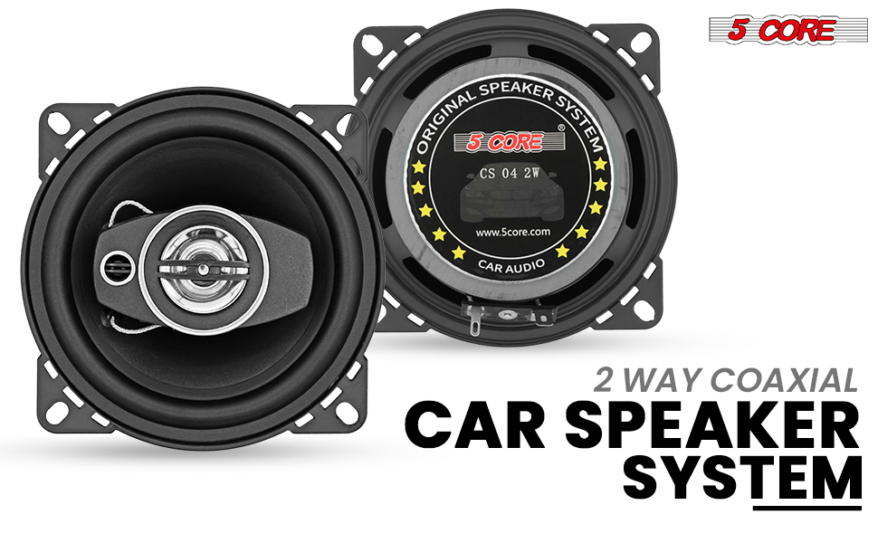 5 Core 2 Way 4' Car Stereo Speakers 250W Pair Coaxial Subwoofer W Tweeter | Universal Fit Quick Easy Replacement Component Speaker Vehicle Door/Side Panel Mount Compatible Deep Bass (PAIR) - CS 04 2W