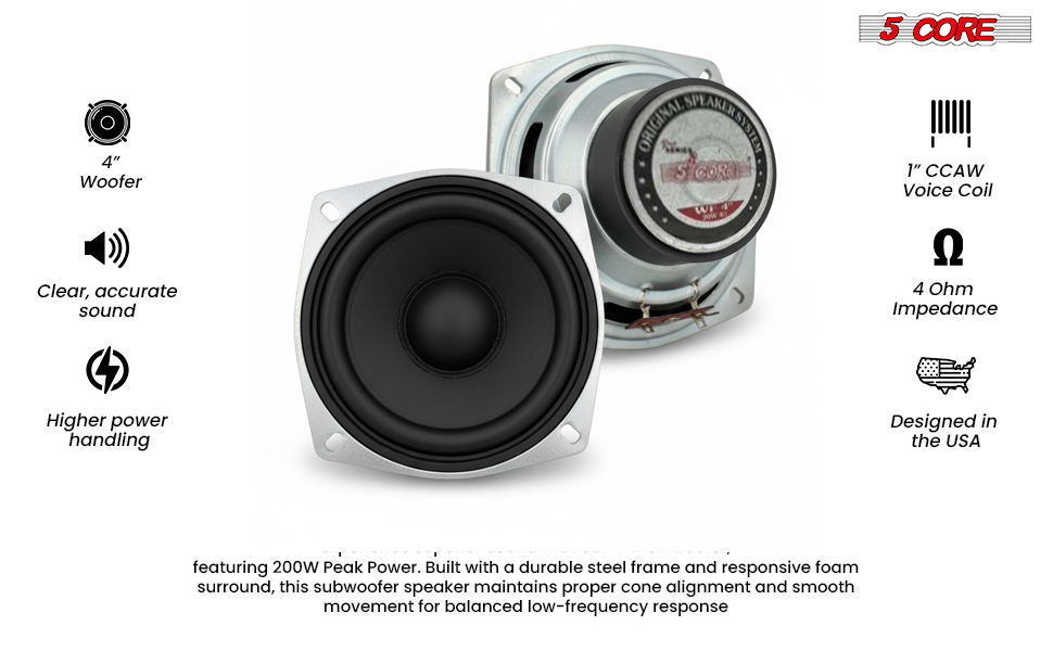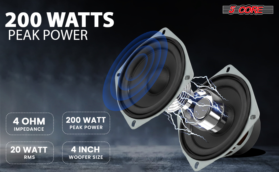 5 Core 4 Inch Subwoofer 200W Car Audio Sub Woofer 4 Ohm Deep Bass Replacement Loud Speaker