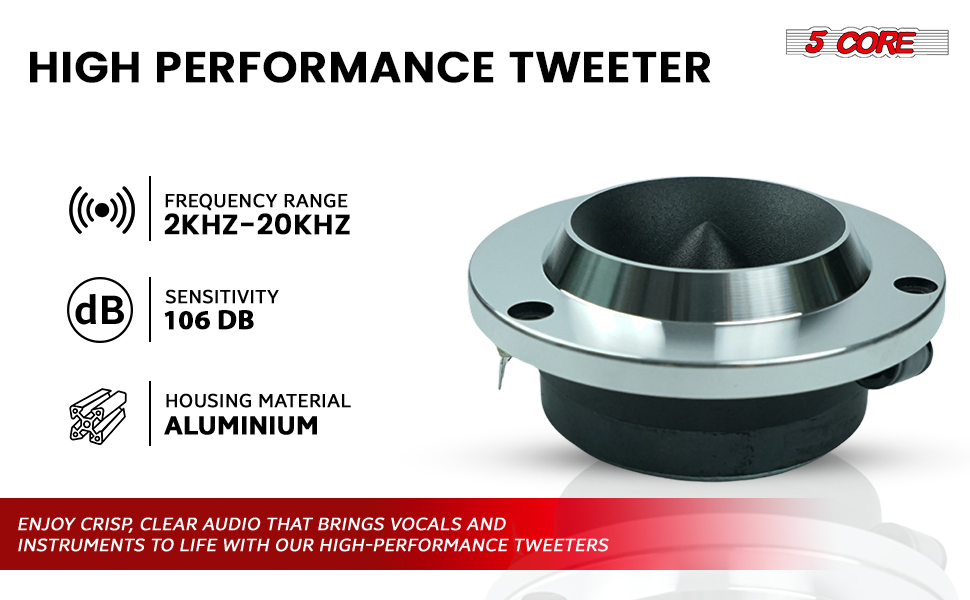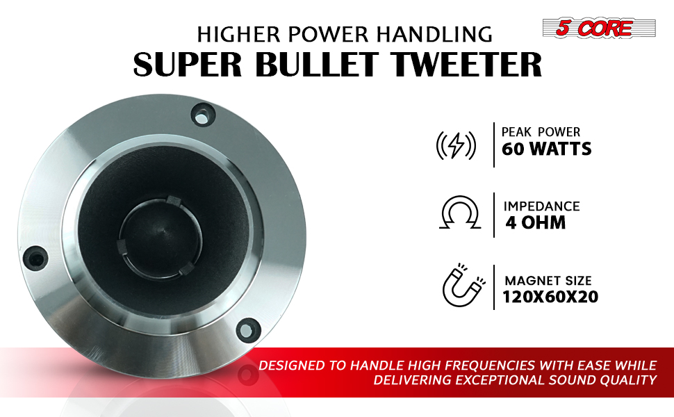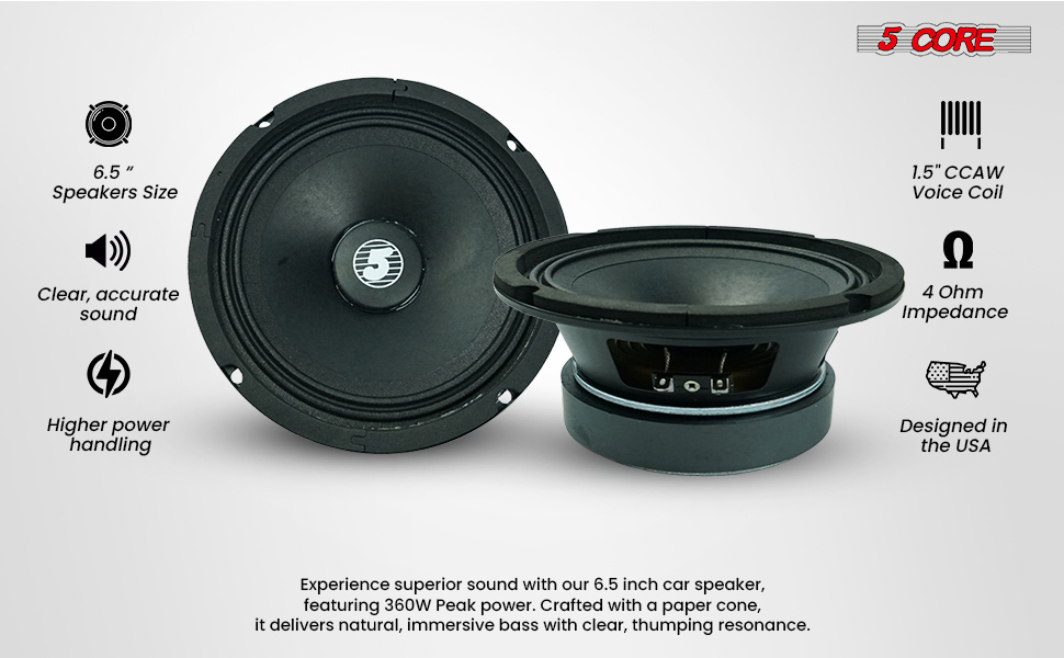5 Core 6.5" Mid-Range Replacement 2Pc Pro Audio Car Speaker 360W 4 Ohms/8 Ohms 60W Aluminum Super Tweeters