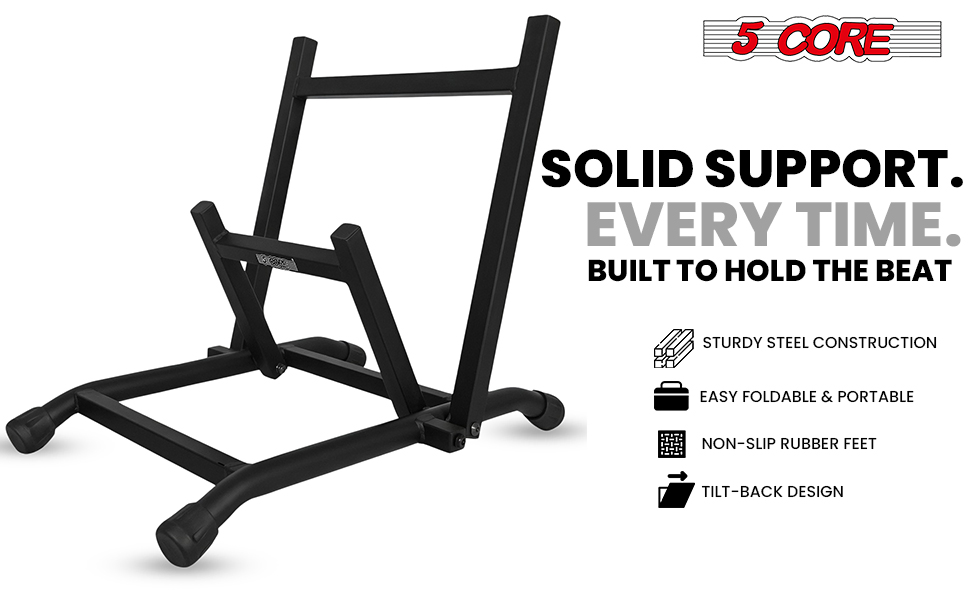 Experience unmatched stability and performance with the 5 Core Guitar Amp Stand—crafted from durable metal alloy and finished with anti-corrosion paint for long-lasting use. Supporting up to 88.5 lbs, it’s perfect for medium to large amps. The 30° tilt-back design enhances sound projection, while padded non-slip arms and anti-vibration rubber feet ensure secure placement and cleaner audio. Its foldable, space-saving structure makes it travel-ready, with no tools required for setup. Improved airflow prevents overheating, and the sleek black finish complements any stage or studio. Built for universal compatibility, this stand is the reliable choice for serious musicians.