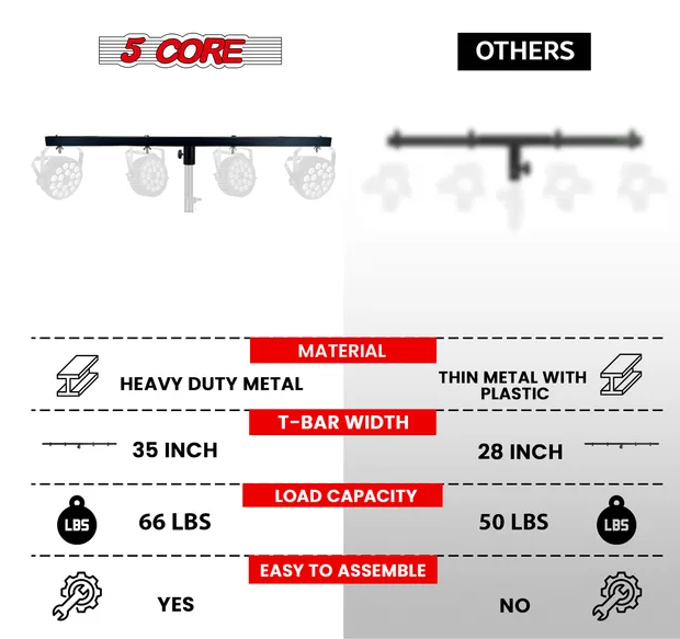 5 Core DJ Lighting T Bar 4 Party Lights 39 Inch Extension Crossbar Tbar Mount W 66 Lbs Capacity