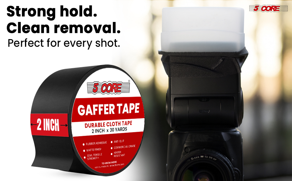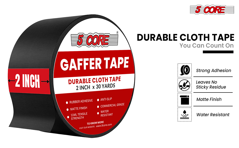 5 Core Gaffers Tape 2 Inch 30 Yards Professional Pro Gaff Tape Non Reflective Water Resistant