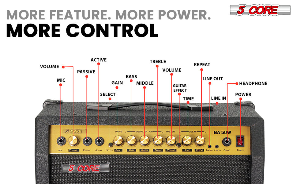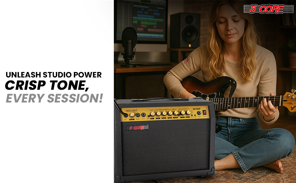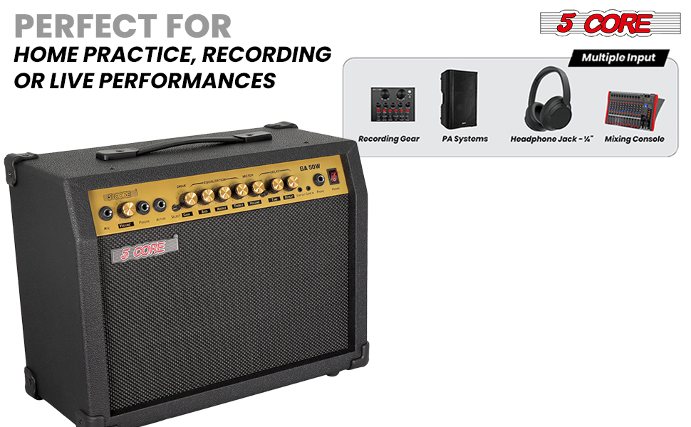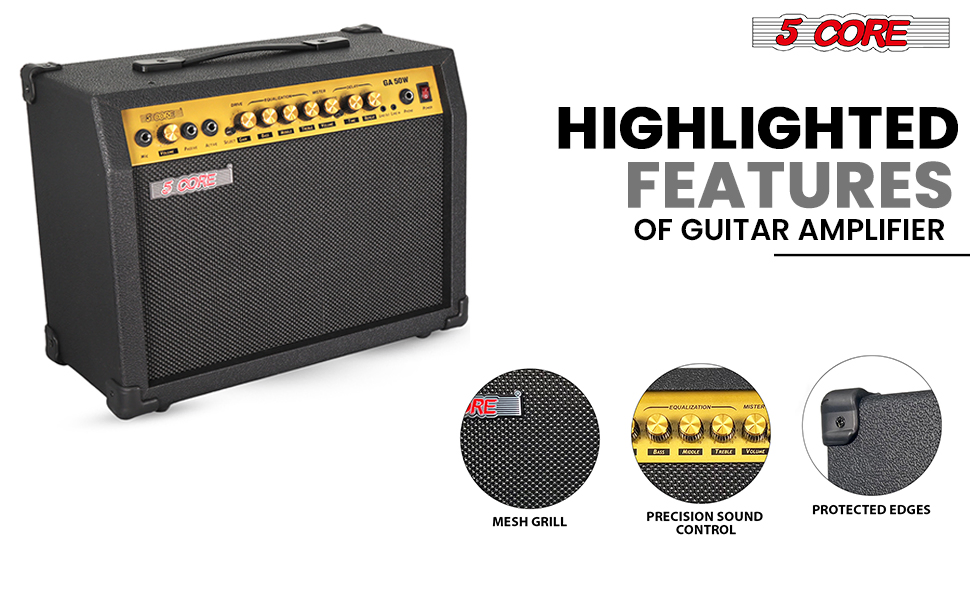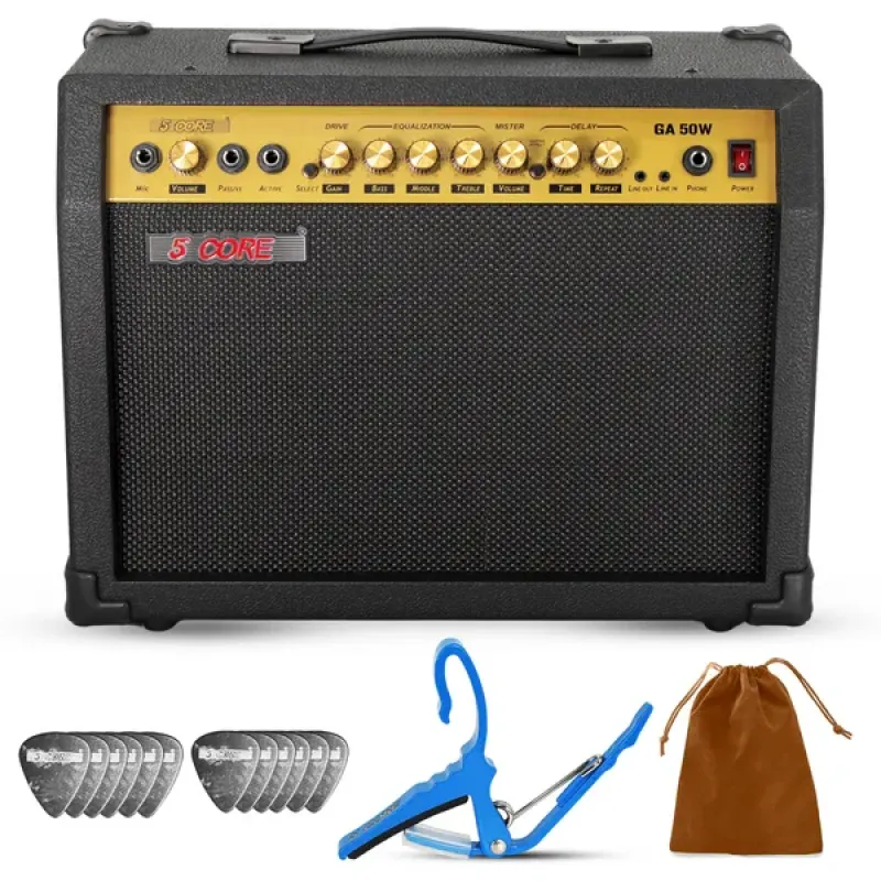 5 Core Guitar Amp 50 Watt Electric Amplifier W Built In 8" Speaker Portable Mini Amps W Aux