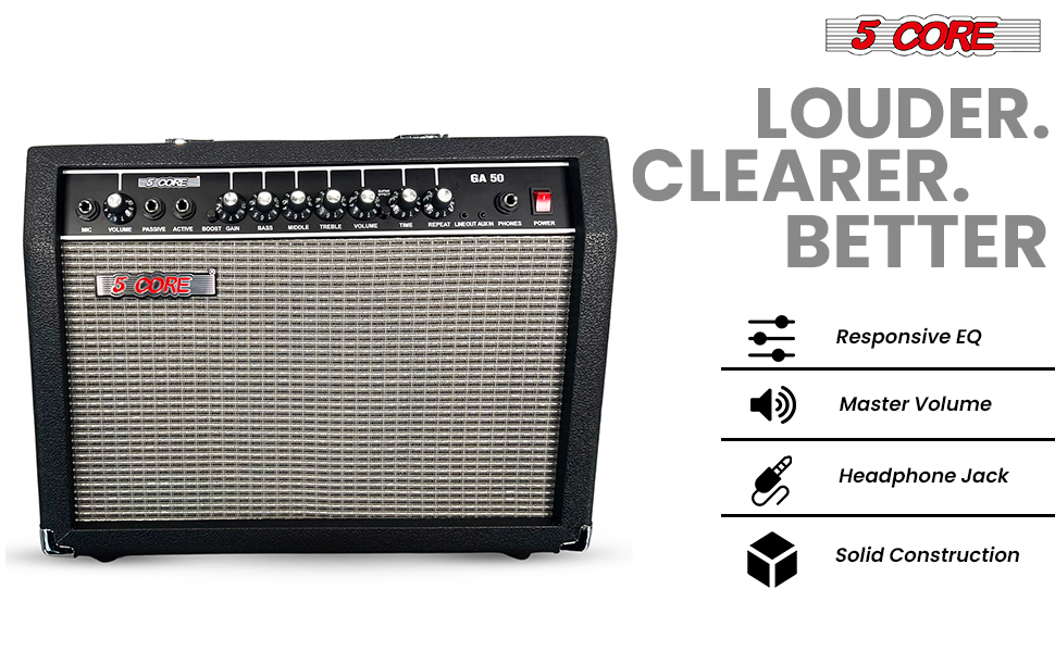 5 Core Guitar Amp 50 Watt Electric Amplifier W Built In 8" Speaker Portable Mini Amps W Aux